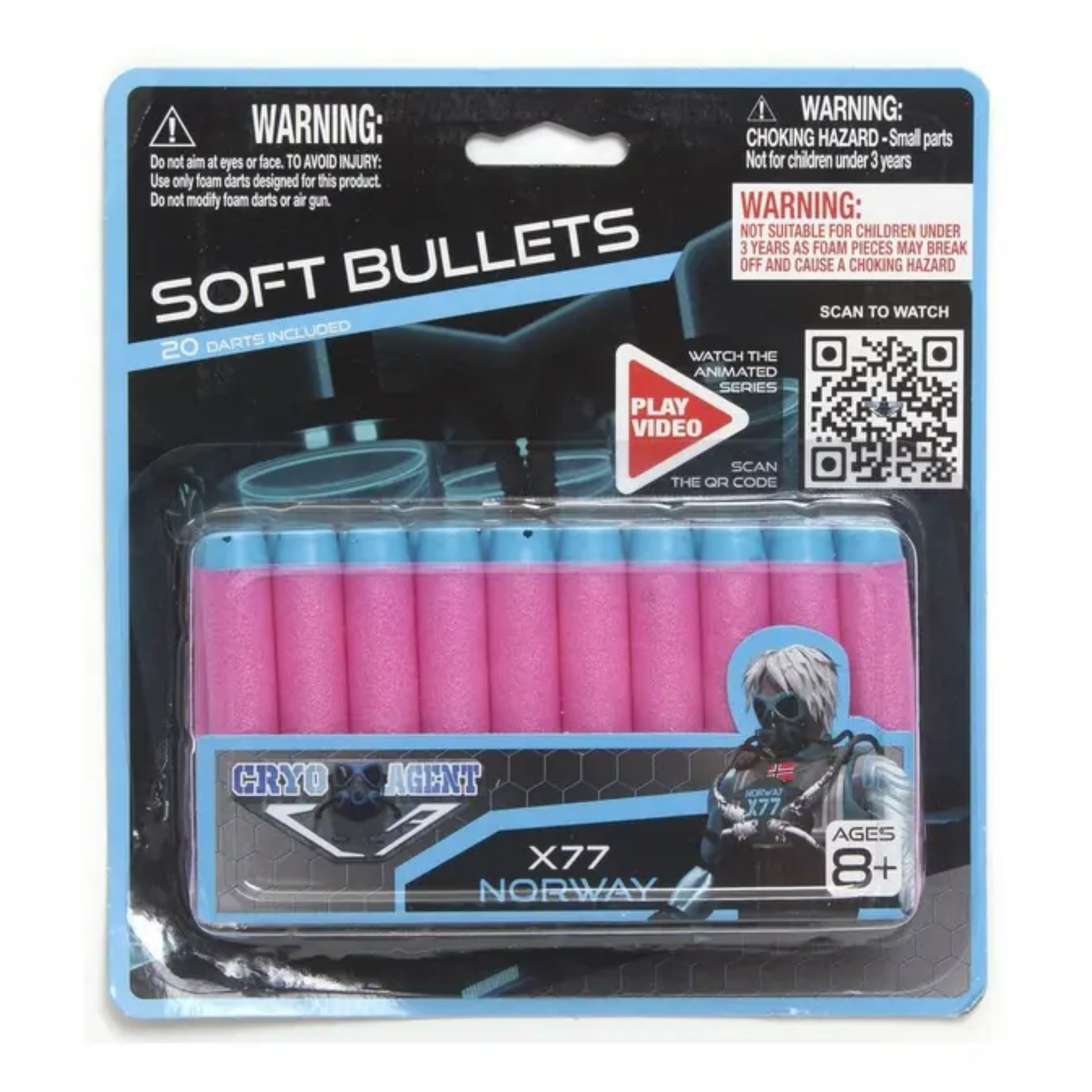 Keep the action going with the Cryo Agent 20 Pcs Soft Darts refill pack! Designed to ensure your child’s Cryo Agent dart guns are always ready for action, this pack includes 20 soft, child-safe darts that provide hours of fun and excitement.