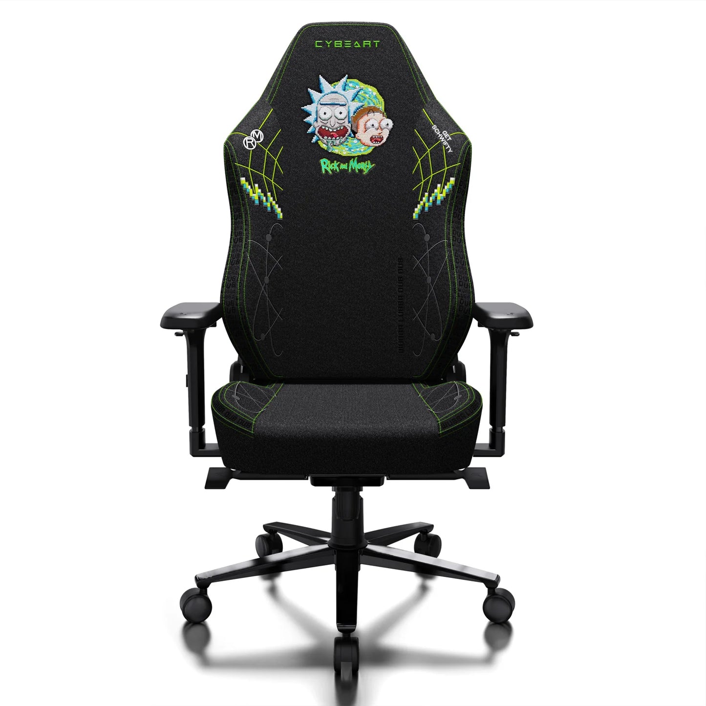 Design: Features Rick and Morty graphics on an ergonomic frame inspired by a cobra hood.