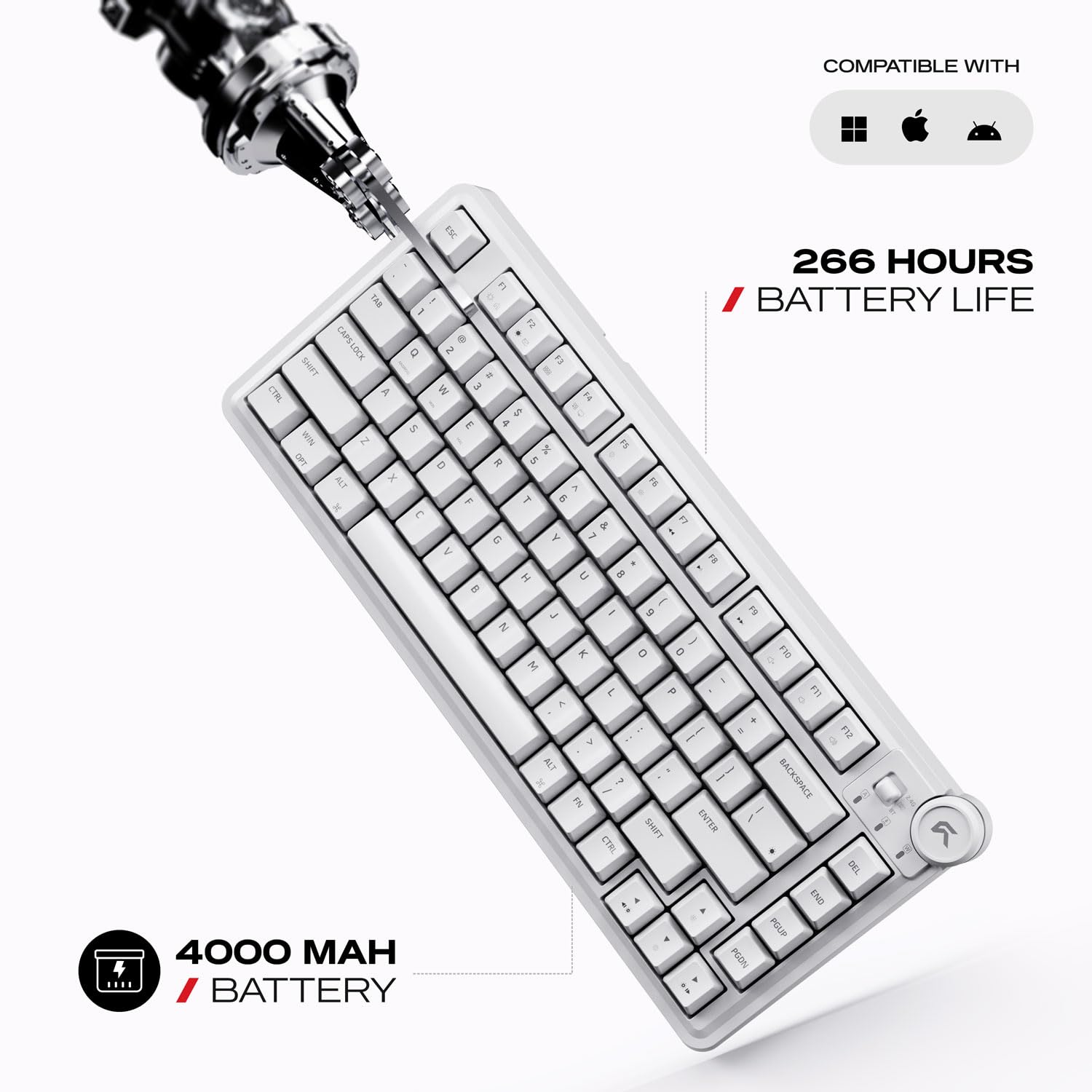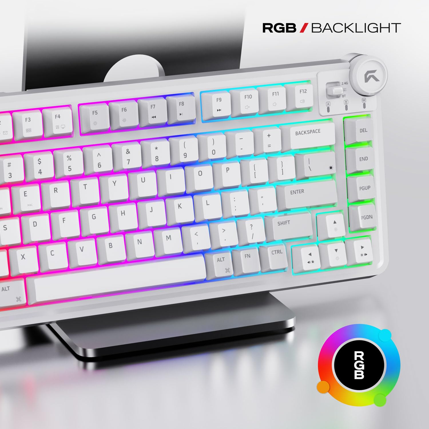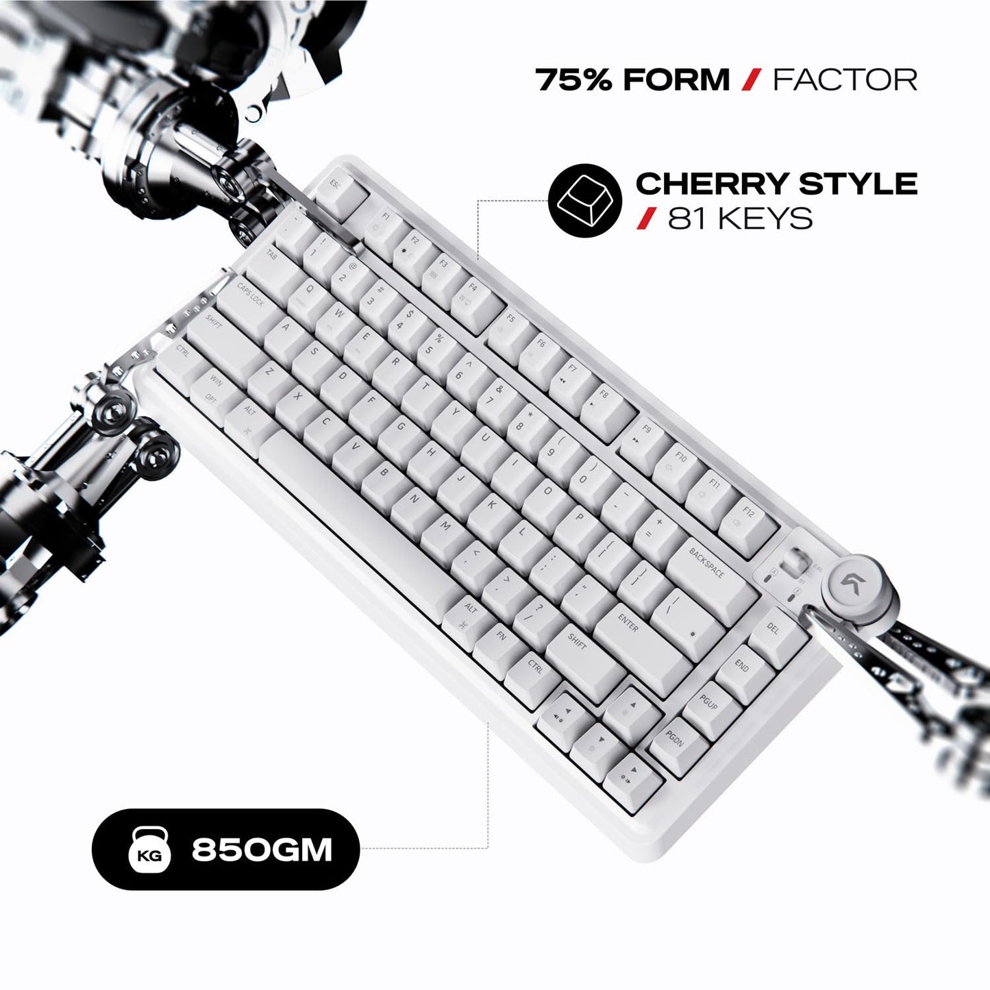 FORM FACTOR: A Tri Mode connectivity (Bluetooth 5.1 / 2.4Ghz Wireless, USB) enabled 75 % layout with 81 keys and a dedicated volume knob, designed for efficiency and quick media control. Premium ABS bezel frame for strength, stability, lightweight durability and sleek aesthetics.