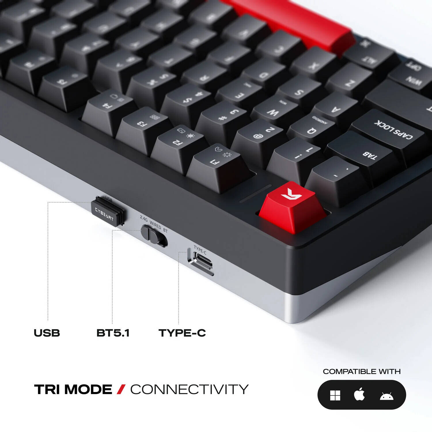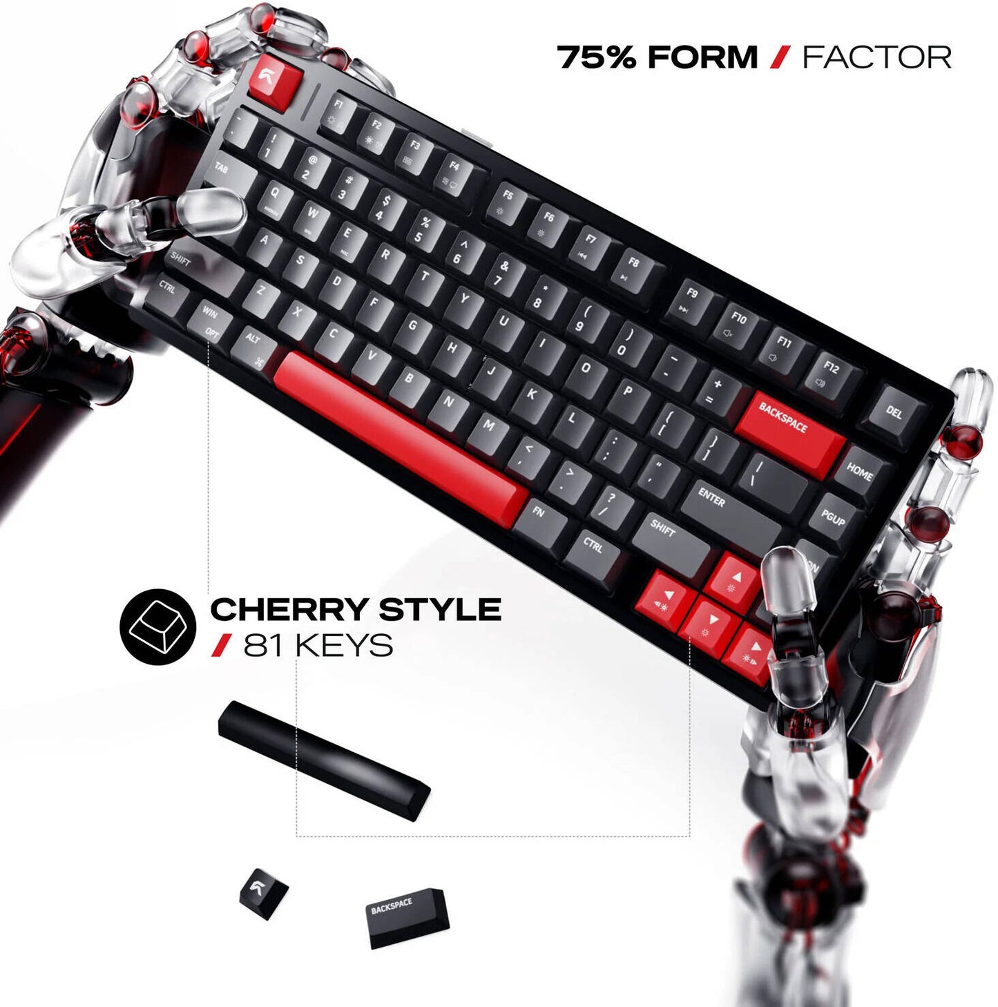 FORM FACTOR: A Tri Mode connectivity (Bluetooth 5.1 / 2.4Ghz Wireless, USB) enabled Compact 75% layout with 81 keys for optimized desk space and full functionality - perfect for gaming, typing, and productivity. CNC-machined aluminum frame delivers exceptional rigidity, stability, and a premium finish that elevates your setup’s aesthetics.