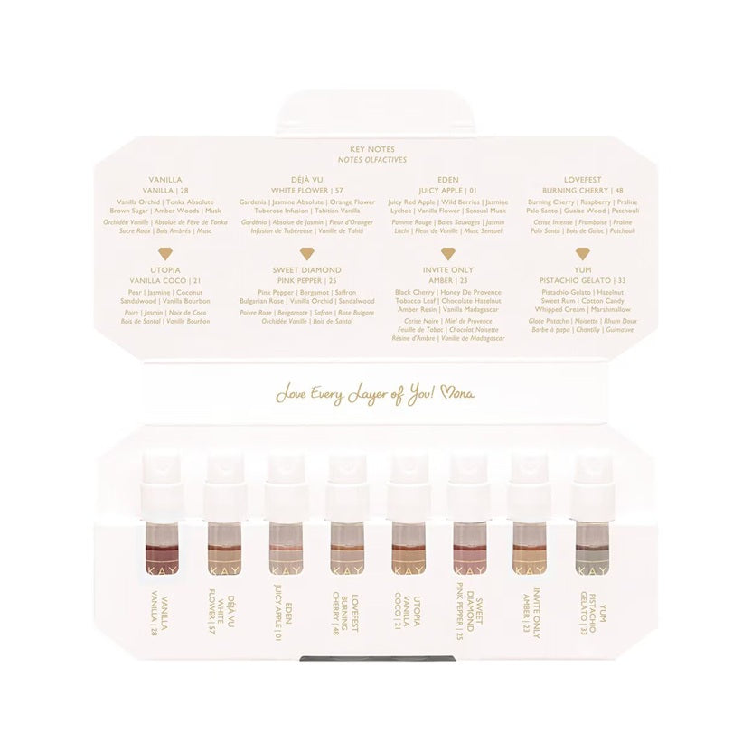 Create your own scent mood with this super-giftable and travel-friendly KAYALI Discovery Layering Set! From decadent gourmands to fruity florals, this limited edition set features eight of Mona’s fav fragrances and best-sellers in the collection. Wear them alone or layer together to discover your own signature scent combination