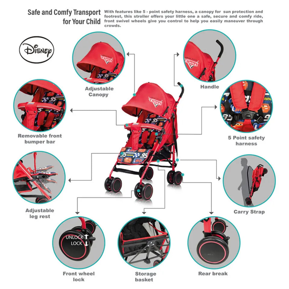 - LIGHTWEIGHT DESIGN - A lightweight stroller makes any outing a little easier; The Disney Cars Lightning McQueen Adventure Stroller has a carrying strap and lightweight frame (5.9 kg) for quick pick up and go