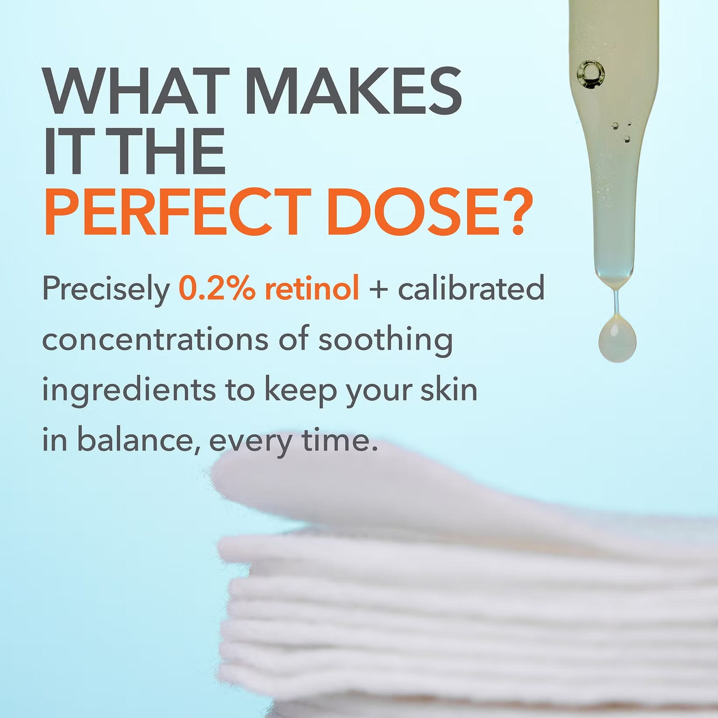 Each pad is drenched in a dermatologist-formulated powerhouse concentrate, packed with 0.2% pure liquid retinol, bakuchiol and rambutan for maximum efficacy. The potent formula seeks to lift away dead skin cells, revealing a radiant glow, while reducing the look of textural irregularities. Thanks to a nourishing blend of squalane, hyaluronic acid and soothing ferulic acid, skin is left hydrated and visibly balanced for smoother, brighter-looking skin with just one swipe.