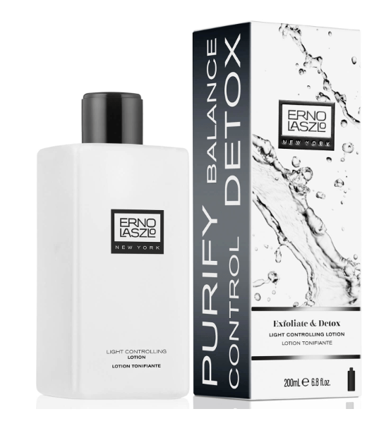Specially formulated to reduce surface oil and eliminate dullness, Erno Laszlo Light Controlling Lotion is an exfoliating toner that will leave your skin looking radiant. Formulated with natural humectants which attract and bind moisture to your skin, the toner also has anti-inflammatory properties to relieve irritation and stimulate tissue repair, whilst antiseptic clove oil eliminates blemish-causing bacteria. Just a quick sweep is all you need to tighten your pores and prepare your skin for moisturising. - L.M.