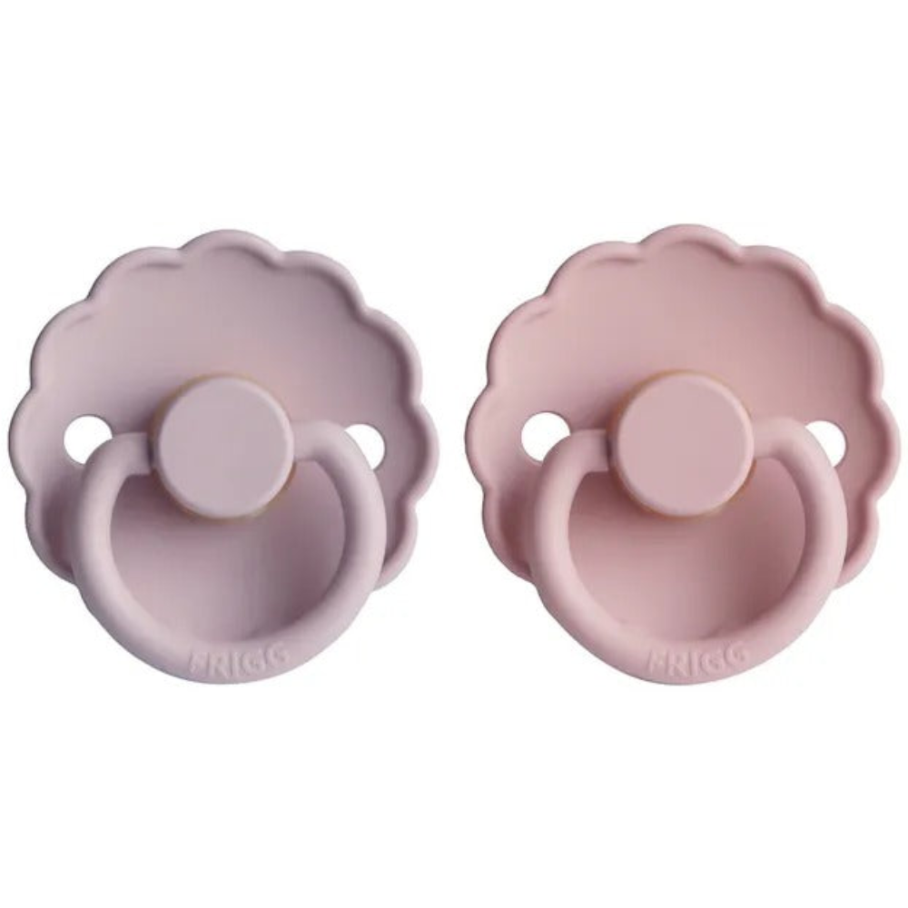 The FRIGG Daisy pacifier with scalloped edges that mimic flower petals is the essence of elegant design. The flowery and modern details catch the eye of every style-conscious mother. That makes FRIGG the perfect fit for today's mothers who attach great importance to classic designs with modern twists when choosing baby essentials. , , FRIGG Daisy is available in two sizes: ,