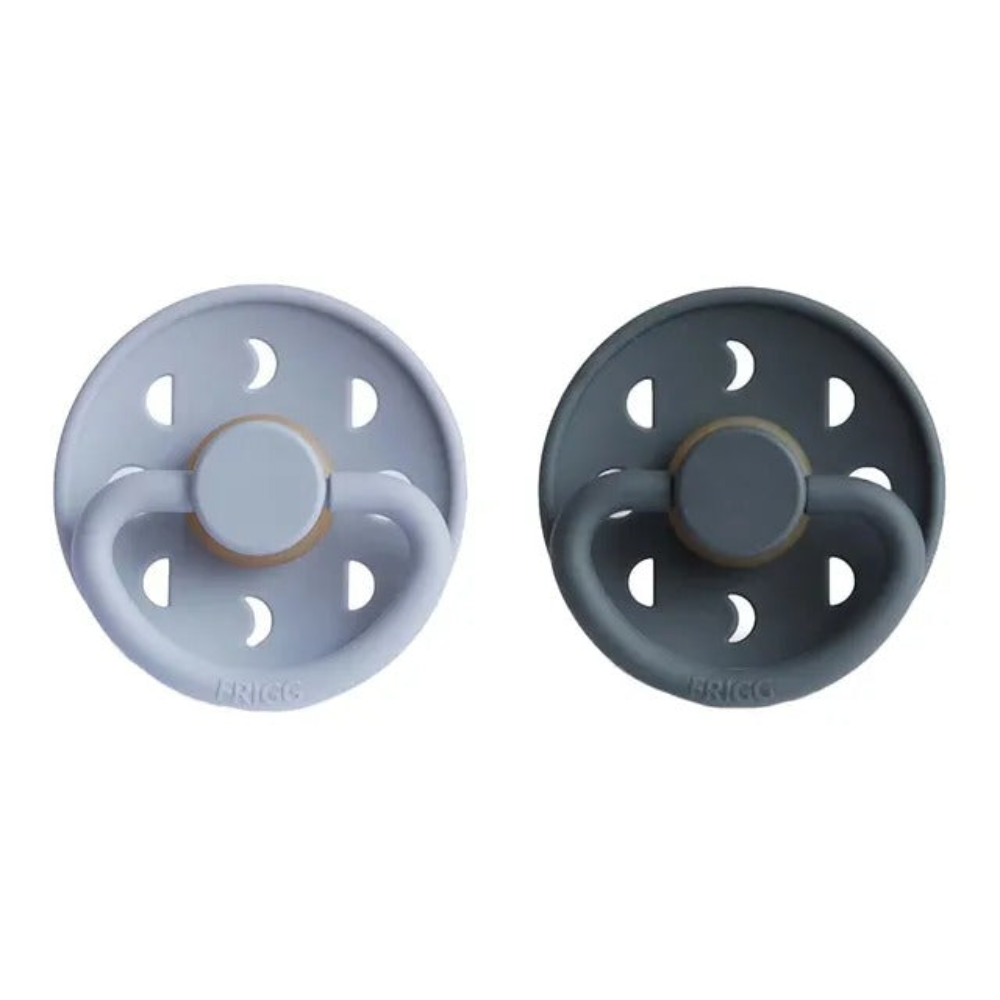 FRIGG Moon Phase is a pacifier inspired by the Moon in motion. The shifting Moon Phases are reflected on the pacifier shield, and they function as air holes to ventilate baby's sensitive skin. The Moon Phase inspiration continues in the handle, shaped as a half moon. FRIGG 2-pack are packed and ready for you little ones! , ,
