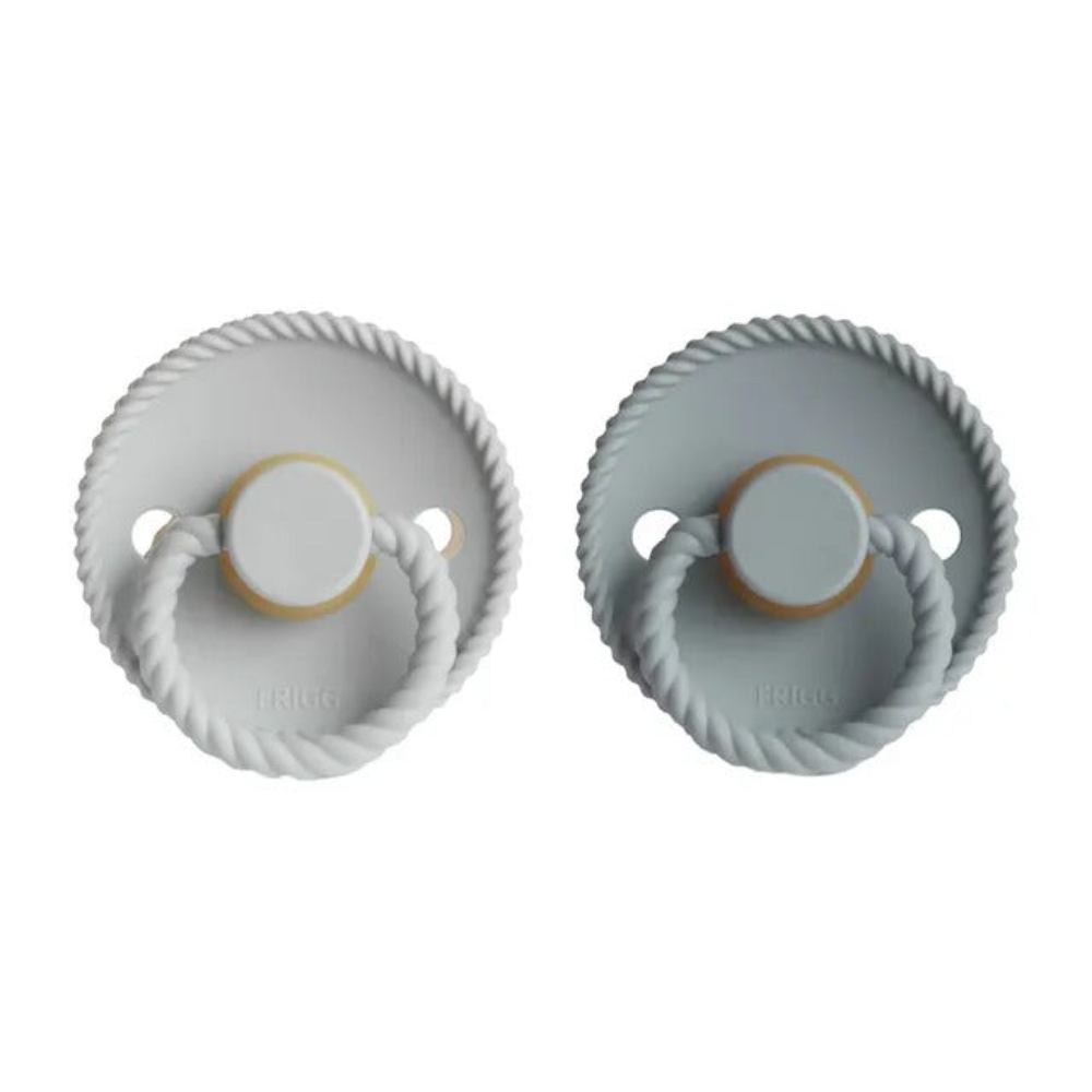 FRIGG Rope makes you think of adventures involving strengths, heights, and depths. The rope is an essential item when you are hiking or climbing. It represents the safety and stability when activities become risky or unpredictable. This shows the underlying inspiration behind the design of FRIGG Rope pacifier. The inspiration of a rope is clear in the design of the pacifier as a thin rope encircles the shield, and a thicker rope is used as a handle. FRIGG Rope is for both boys and girls who love a great adventure.