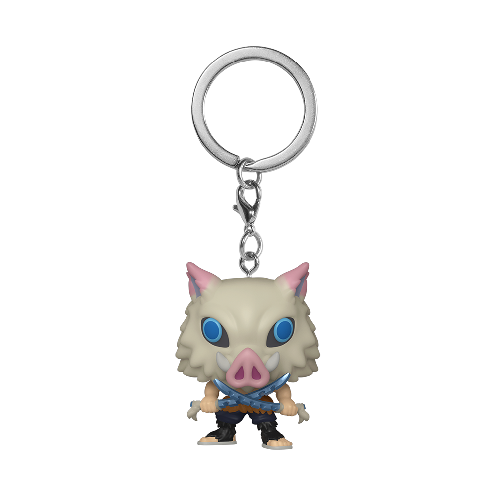 Inosuke Hashibira from Demon Slayer is showcased in this Pocket Pop! keychain. The figure highlights his wild appearance and boar mask.