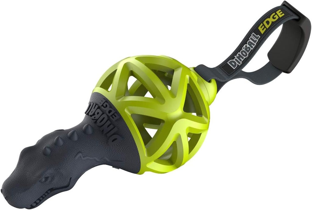 Upgrade your dog's playtime with the Gigwi Dinoball Edge! Made with durable material and a textured surface, this medium-sized ball is perfect for fetching, chewing, and interactive play. The attached strap makes it easy to throw and adds an extra challenge for your furry friend. Enjoy endless fun and exercise with this exciting toy.