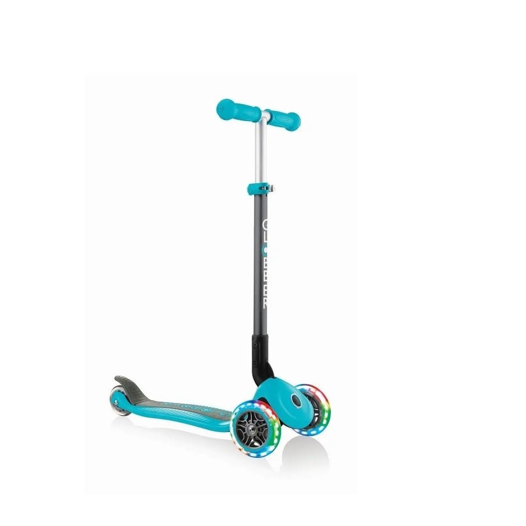 Globber - Primo Foldable Kids Scooter with LED Lights - Anti-Slip, Adjustable Height - Teal