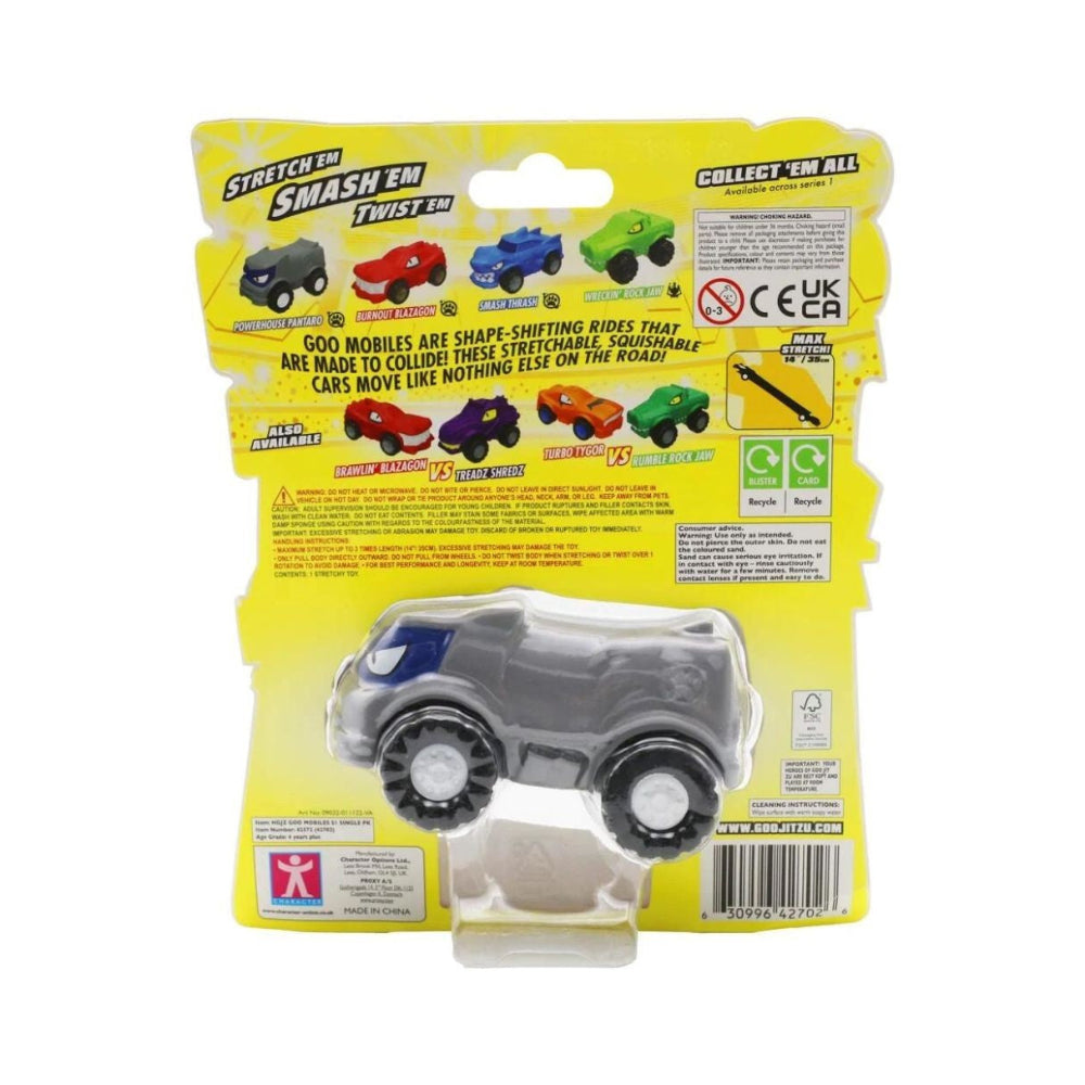 Introducing the Heroes of Goo Jit Zu Goo Mobiles Single Pack featuring Powerhouse Pantaro! Get ready to hit the road with the powerful and flexible Powerhouse Pantaro, a unique toy vehicle that transforms your favorite Goo Jit Zu hero into an amazing Goo Mobile. Designed for maximum stretchability, squishiness, and twistability, Powerhouse Pantaro offers kids an exciting and interactive play experience. This shape-shifting vehicle is made to collide, stretch, and bounce back, providing endless hours of fun. With its resilient and durable design, Powerhouse Pantaro is a must-have addition to any Heroes of Goo Jit Zu collection, bringing new adventures to life.