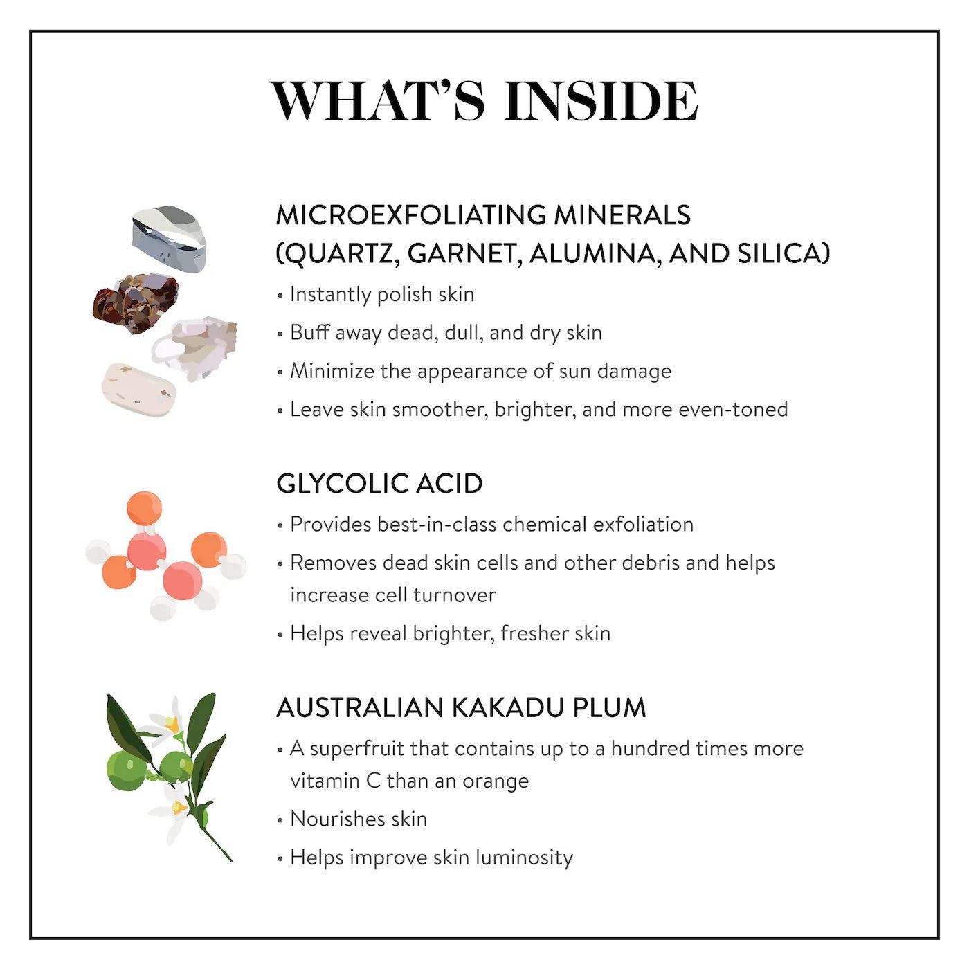 GOOPGLOW Microderm Instant Glow Exfoliator is inspired by the transformative brightening, smoothing effects of popular in-office microdermabrasion treatments. It's a dual-action microdermabrasion exfoliator that delivers the benefits of both physical and chemical exfoliation, instantly polishing away roughness, smoothing uneven texture, and revealing a healthy-looking, glowing complexion. The air-whipped, almost marshmallow-like formula is densely packed with a blend of four powerful glow-inducing microexfoliating minerals (quartz, garnet, alumina, and silica) plus glycolic acid to help sweep away dry, dead skin cells and refine the appearance of pores for skin that is visibly softer, smoother, and more radiant.