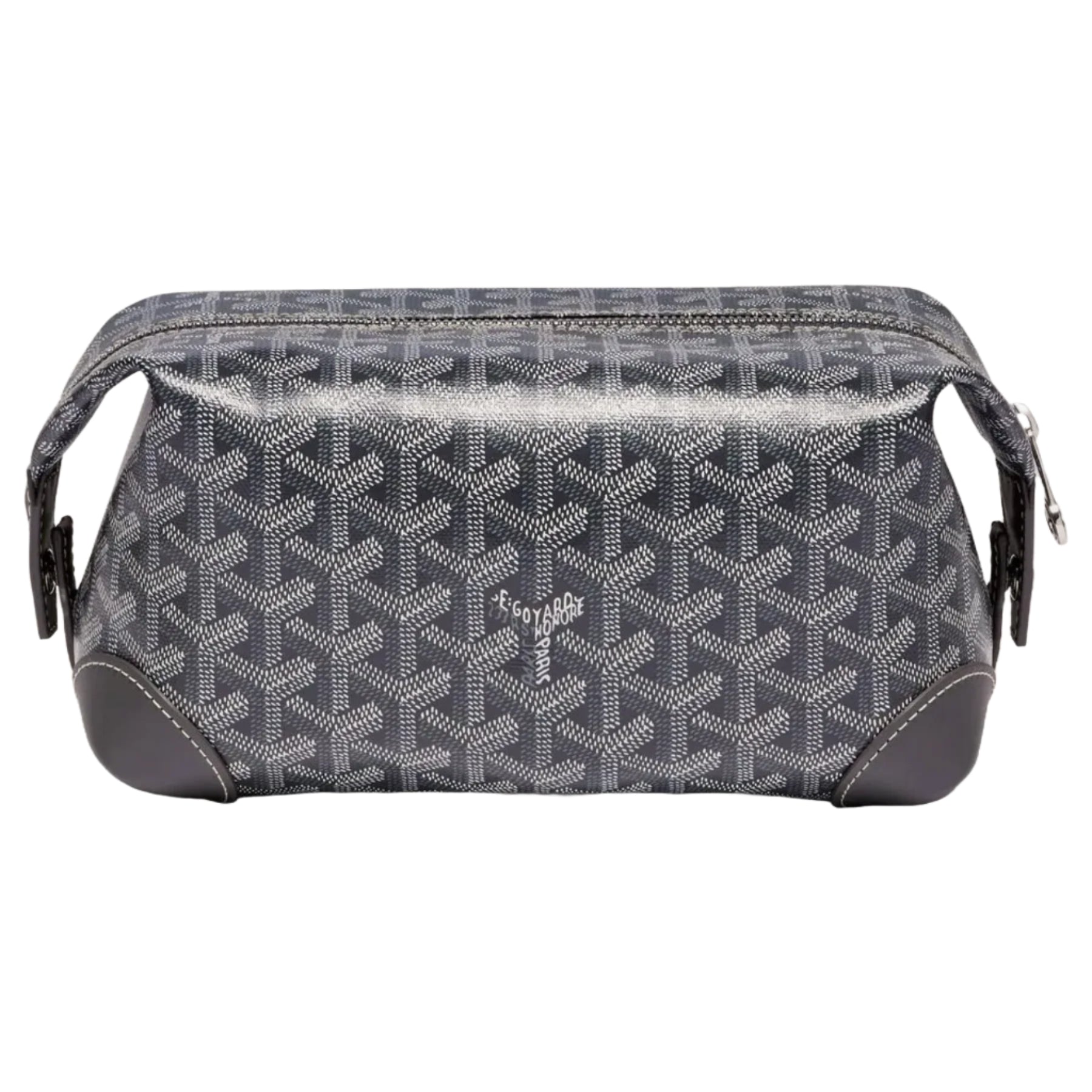 The Goyard Bowling 25 Toiletry Bag in Grey combines timeless elegance with practical design. Crafted from Goyard’s signature coated canvas, this compact bag offers durable protection for your essentials while maintaining a sleek, sophisticated look. Its structured shape and secure zip closure ensure your toiletries stay organized and accessible, making it an ideal companion for travel or daily use. The subtle grey tone adds versatility, complementing any style with understated luxury. Perfect for those who appreciate refined craftsmanship and functional elegance.