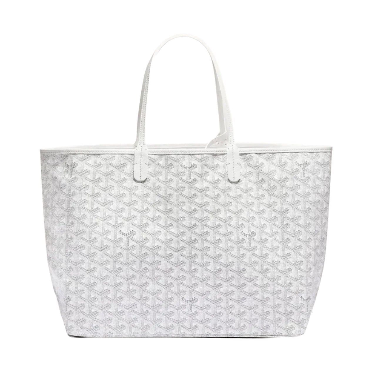 Elevate your style with the iconic Goyard Saint Louis Tote “PM White”. This classic luxury tote bag, made from the brand's iconic coated canvas, combines luxury and practicality. It is perfect for special occasions and daily wear because of its roomy interior and comfortable shoulder straps. The crisp white color is elegant and pairs nicely with multiple outfits. This versatile designer bag is fully reversible and also has a detachable pochette, making it extremely versatile. Whether you are looking for a timeless accessory or a high-end fashion statement, the Goyard Saint Louis Tote PM in white is an ideal choice.
