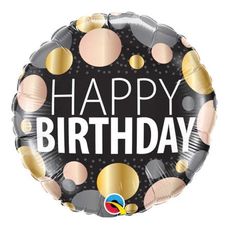 Happy Birthday Gold, Bronze and Grey Helium Balloon 1pc