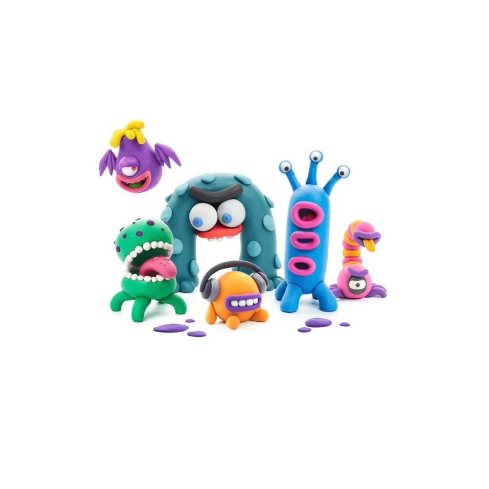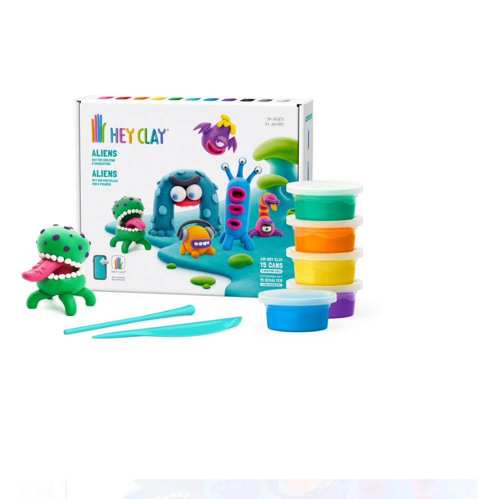 The feather-light plasticine in bright colors is extremely soft and elasticl. With each set can be freely designed and modeled according to instructions. The promo code in the package leads to the Hey Clay app, where children can find step-by-step animated building instructions for the motifs presented on the packs. Once the creations have dried after 24 hours, they are wonderful to play with. The finished figures can be collected. The colors can be easily mixed. Hey Clay does not stick to the hands. Air-drying plasticine 5 different colors in 15 cans 2 modeling tools 230 g clay
