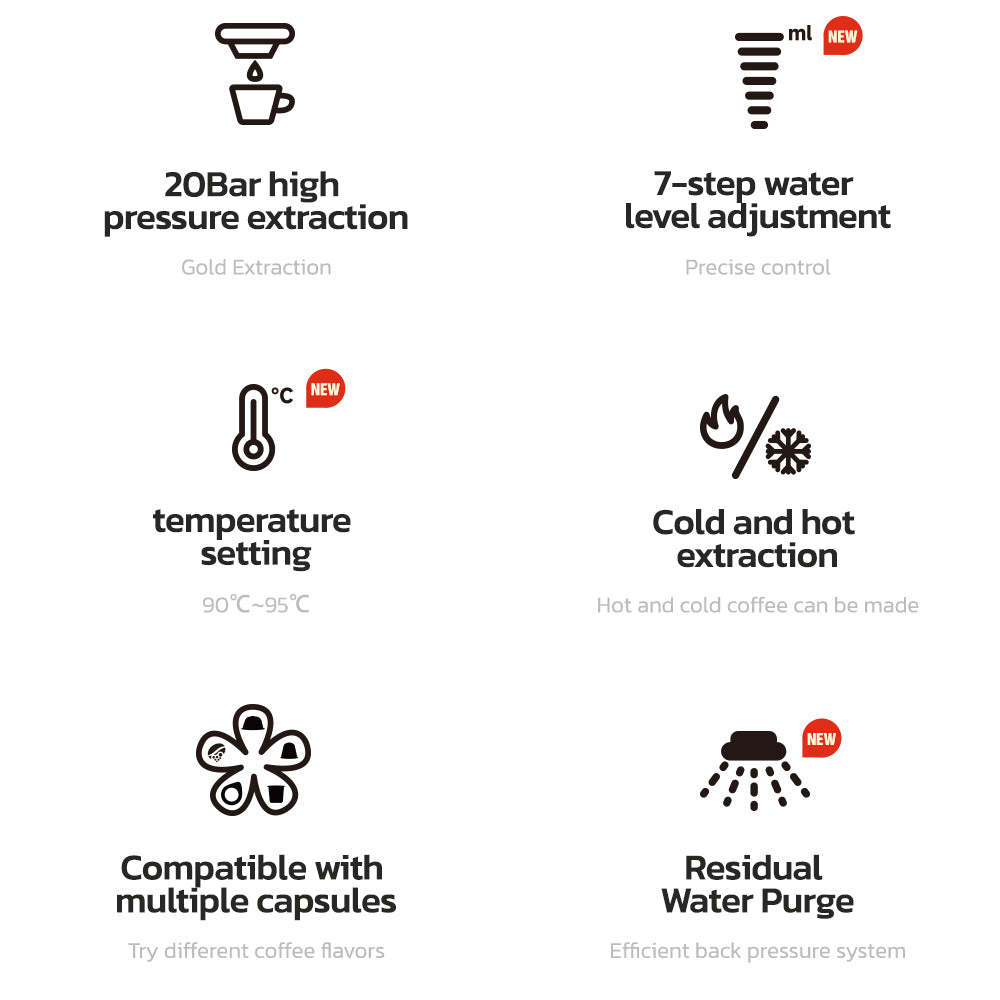 the new with 100mm/330ml than the old 85mm/45ml .A standard mug(95mm in height) can be accommodated