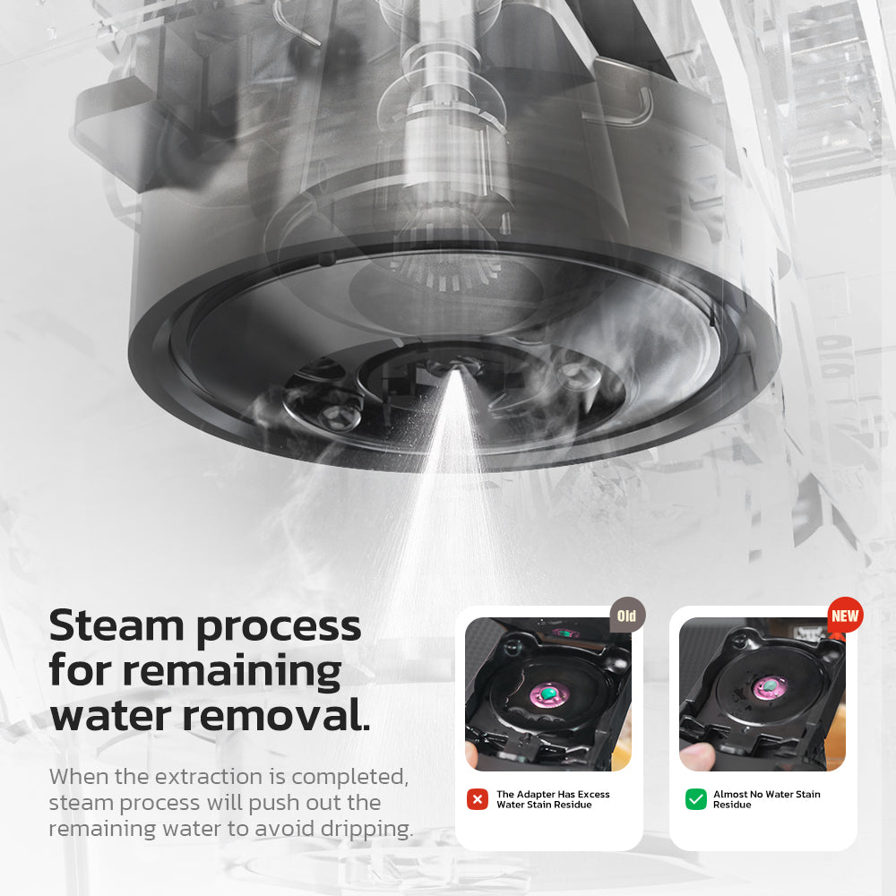 When the extraction is completed , steam process will push out the remaining water to avoid dripping