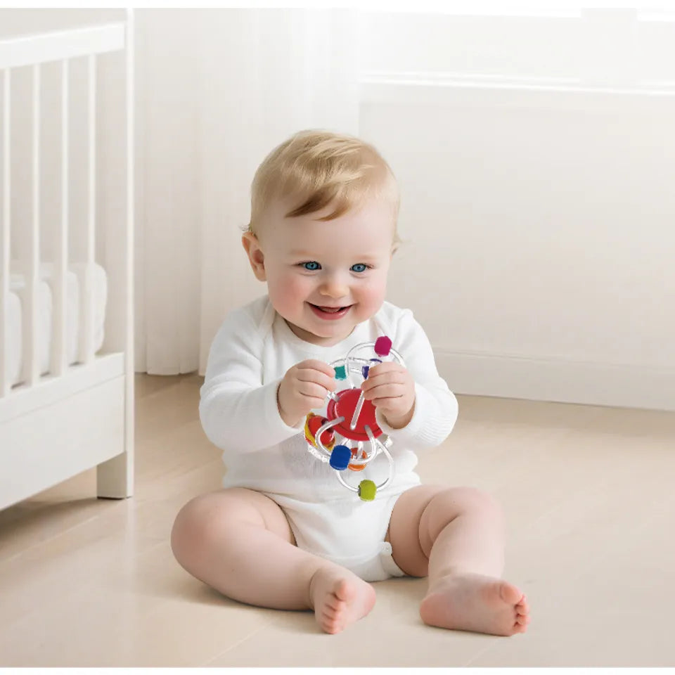 - Interactive 360 Degree Rotation: The center sphere of the teether rotates fully, making a captivating "click" sound that not only entertains but also engages your baby's curiosity and encourages playful learning.