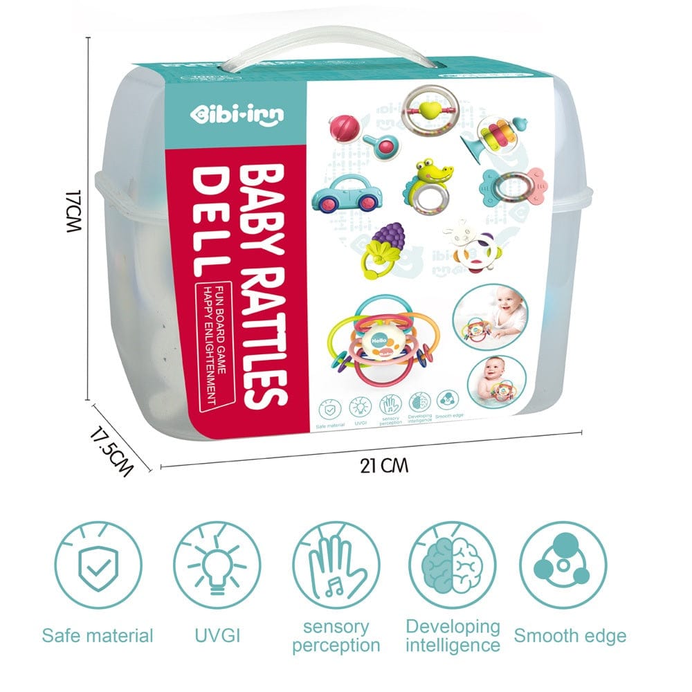 The Ibi Irn Handbell Baby provides a happy enlightenment interaction for the baby. The products can be securely stored in the plastic box once the baby is done playing. The product contains 9 pieces of safe rattles for the child.