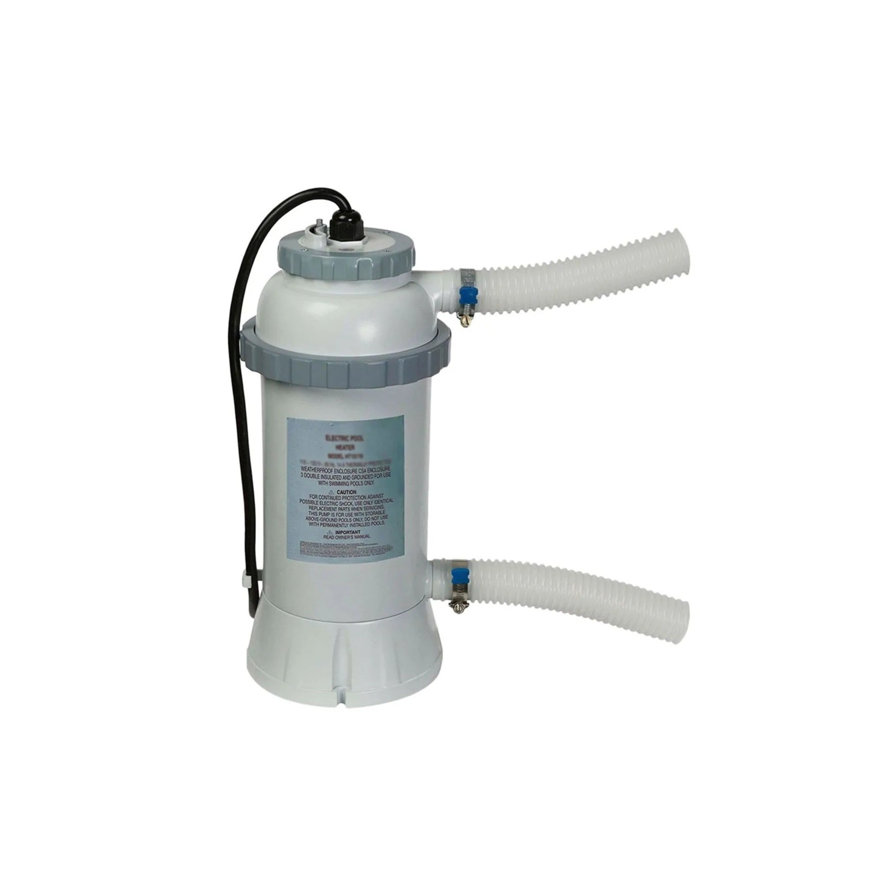 Intex Electric Pool Heater can help maximize the achievable temperature depending on your pool size, the air temperature and how well the pool is insulated by the use of ground and solar covers. Typically, for a well-insulated 10ft inflatable pool of 3500litres, you can anticipate a 5-6degC rise in temperature above ambient after a 12hour period. Don't forget that the pool will cool at night when the air temperature drops. The heater will be less effective with larger pools which will take longer to heat. The achievable top temperature may also be slightly lower. It can be use for pools up to 15 feet capacity.