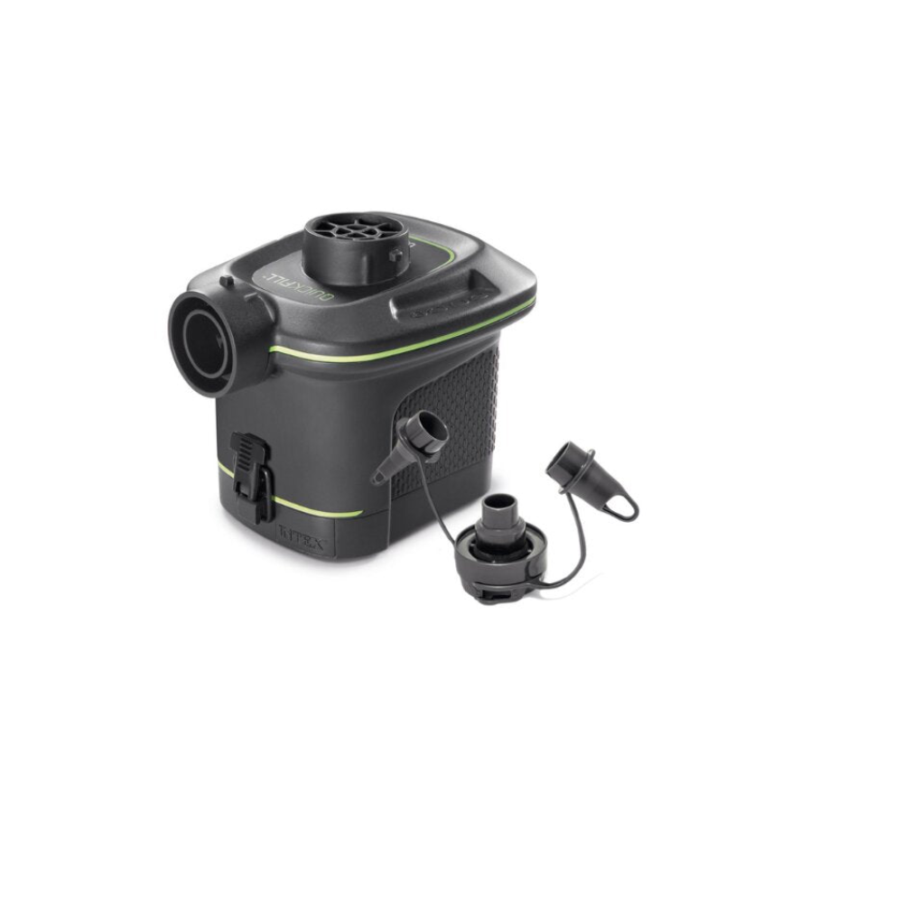 Intex Quick-Fill Battery Air Pump is perfect for using indoors or outdoors, this pump operates on 6 cell batteries. Simply plug in the batteries, turn the pump on and begin inflating or deflating in seconds. The included adapter with 3 nozzles makes this pump compatible with many different inflatable products while the 420 l/min max air flow gets the job done quickly. Never get caught trying to find a power outlet or inflate manually, get the Intex quick-fill battery pump and get the job done quickly. Operates on 6 C-cell size batteries not included.