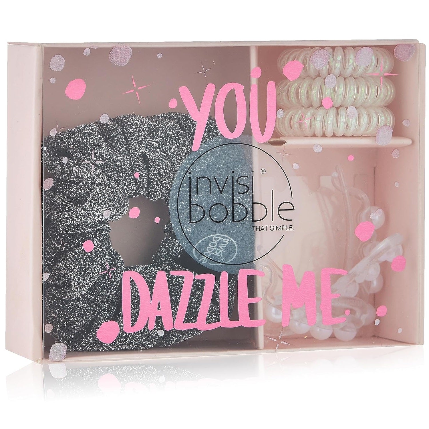 The ideal gift idea for someone special that loves hair accessories. The best of invisibobble in a set. This wonderful gift set oozes "you dazzle me" vibes. Ideal for someone special who loves hair accessories. An elegant design with pearl and metallic effects. The set contains elegant ORIGINAL hair ties, the best, innovative WAVER hair clip & SPRUNCHIE You Dazzle Me. Limited Edition
