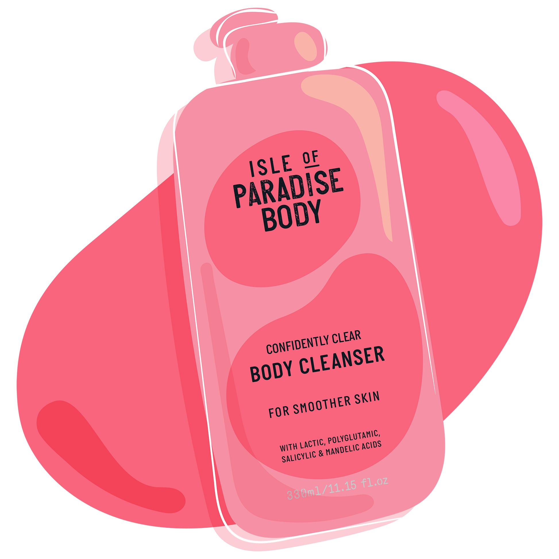 Introducing the Confidently Clear Body Cleanser from Isle of Paradise, a body wash designed for blemish-prone skin types. The formula utilises a blend of skincare actives to encourage a clarified appearance, while uplifting your shower ritual with an orange and jasmine scent.