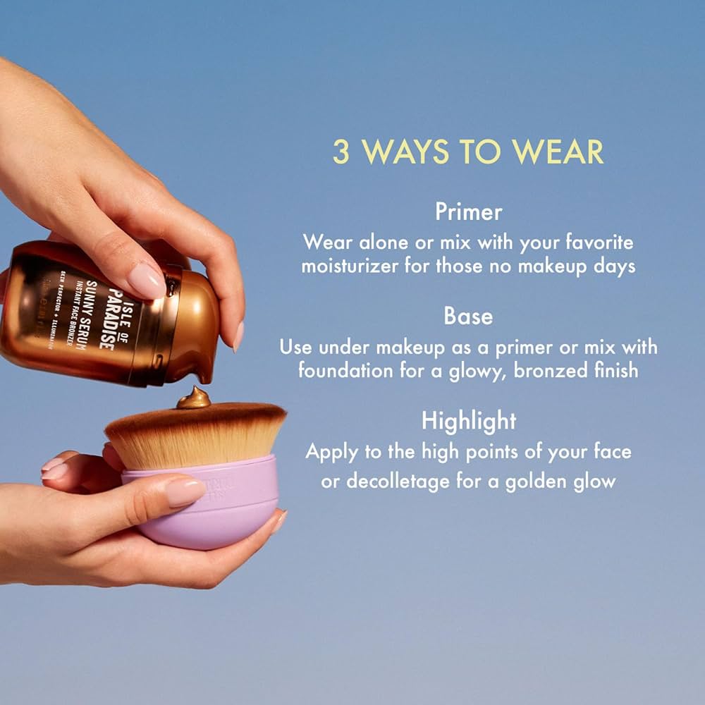 The buildable formula adds sun-kissed luminosity to the complexion under or over makeup, acting as a dewy primer or light-catching highlighter. Enriched with a trio of hydrating actives, niacinamide, squalane and jojoba oil, the bronzing drops work to visibly brighten, unify and nourish the skin, improving the appearance of tone and texture over time.