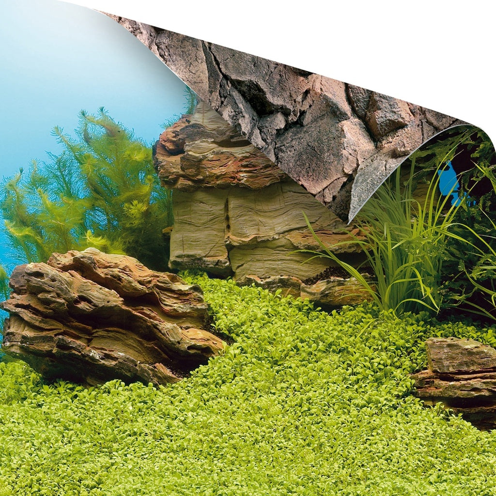 Double sided, with 2 different motives. Suitable background for aquaria from 80 x 50 cm to 100 x 50 cm.