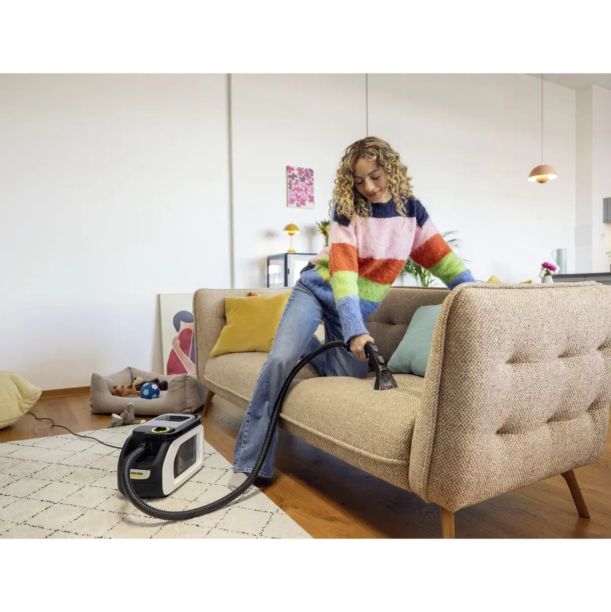 Kärcher SE 3 Compact Home Spray Extraction Cleaner delivers deep fibre cleaning for upholstery and carpets with a compact, easy-to-use design and hygienic flush function.
