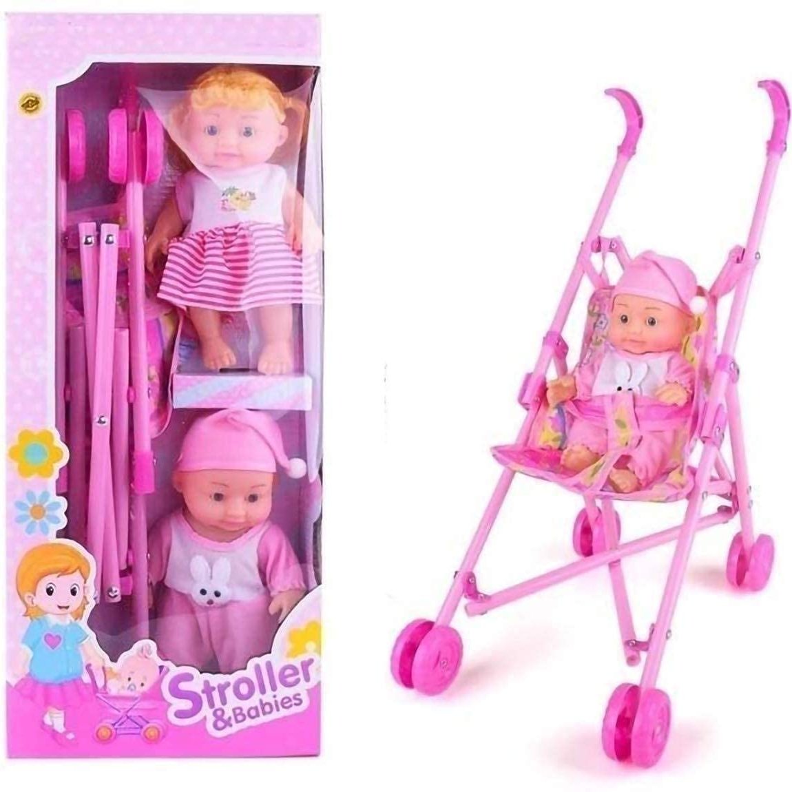 12" doll with a compact, easy-to-maneuver stroller