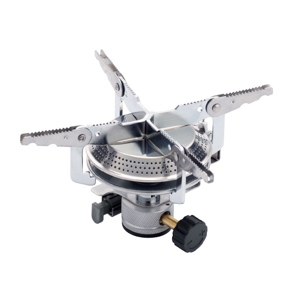 The Kovea Hiker Stove is a popular stove which features larger folding pan/pot supports. It has a large efficient burner head and a piezo ignition for convenience.