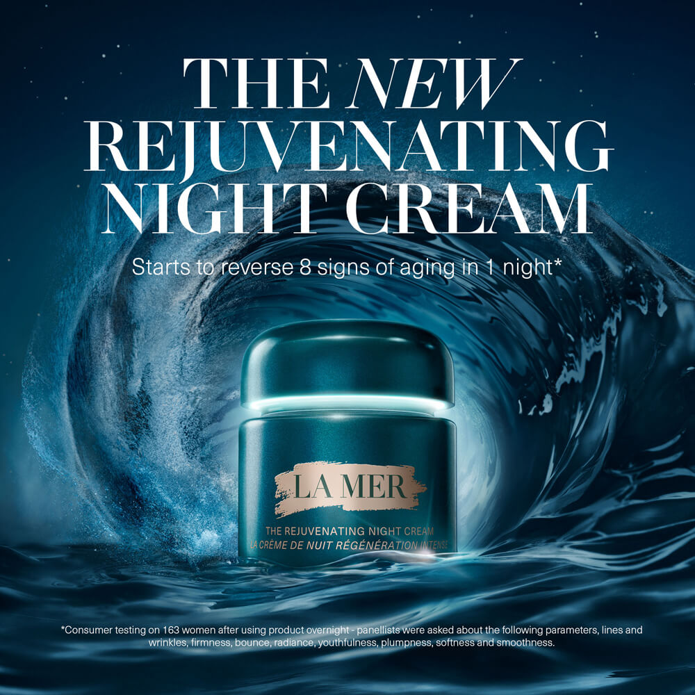 Total rejuvenation starts in an instant thanks to The Rejuvenating Night Cream by La Mer. Not only is this new final step of your nighttime routine clinically proven to start reversing eight critical signs of visible aging in one night (fine lines, plumpness, softness, radiance, firmness, smoothness, texture and wrinkles), but its rich and plush texture is also ideal for all skin tones and types. A veritable powerhouse of plumping, renewing agents (the proprietary Marine Retinol Alternative-3 complex and signature Miracle Broth included), this cream is formulated from Giant Sea Kelp and vital nutrients. These join forces to speed rejuvenation and awaken the look of youth without any irritation.