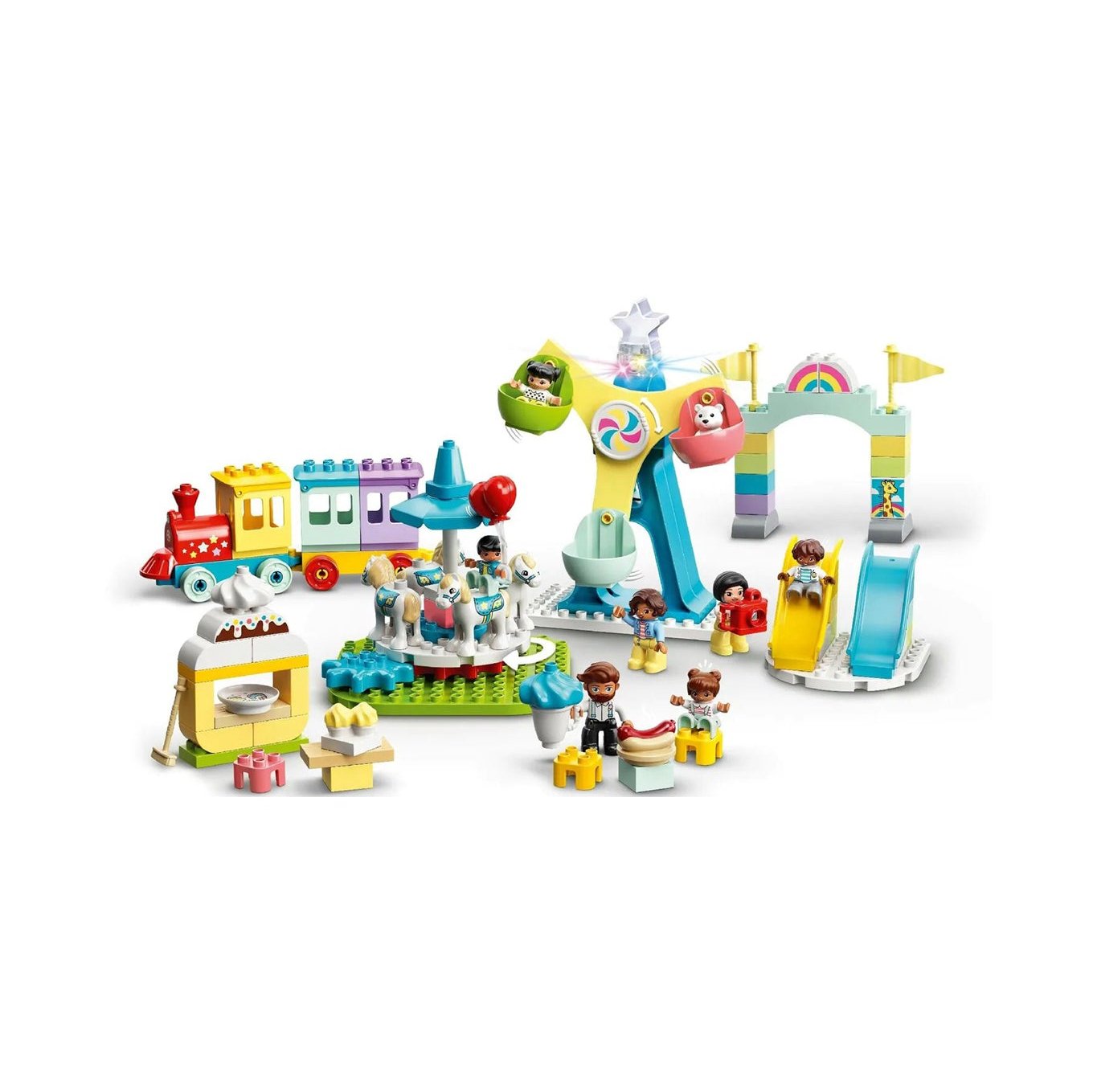 The Amusement Park set features a detailed model of a lively amusement park, including various rides and attractions. This set includes mini-figures of park-goers and vendors, along with buildable elements like roller coasters and Ferris wheels. Builders can enjoy creating and managing their own amusement park, simulating fun and excitement. Ideal for fans of entertainment and carnival play, this set provides a dynamic and interactive building experience.