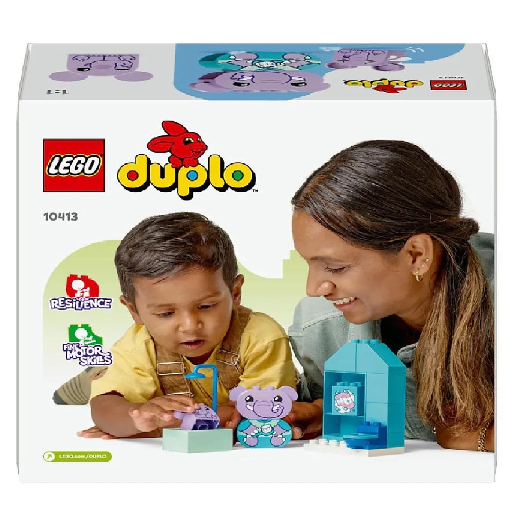 Help preschoolers aged 18 months and up understand their feelings around washing with the My First Daily Routines: Bath Time (10413) learning toy for toddlers. This animal playset comes with 2 elephant toys – a parent and a baby – and a bath, shower and toilet. Parents and preschool kids join their new LEGO DUPLO animal friends in the bathroom, enjoying the fun role-play of getting the baby clean while exploring the importance of washing routines.