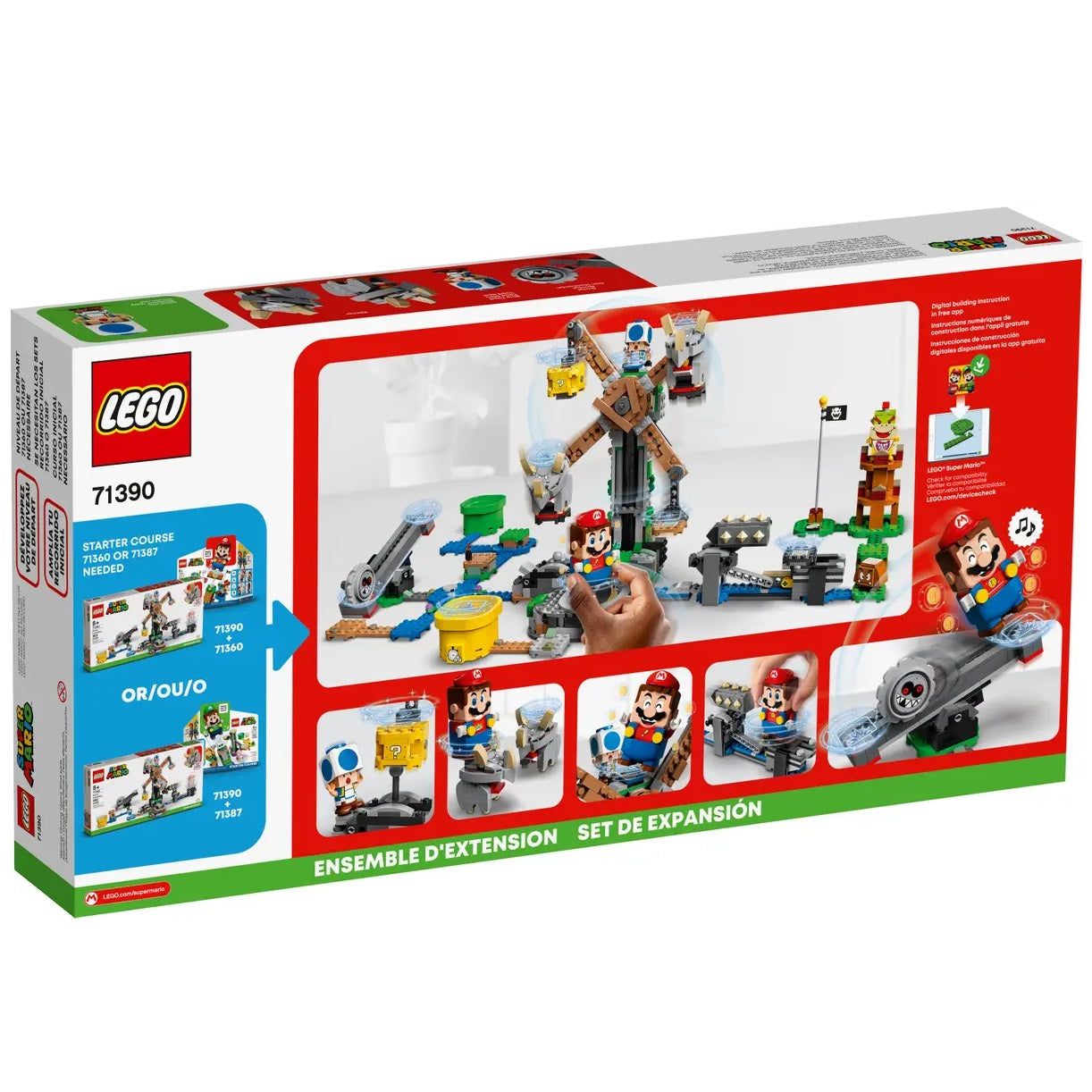 Make the LEGO® Super Mario™ universe extra exciting for kids with this Reznor Knockdown Expansion Set (71390). It features buildable rotating platforms that spin by turning LEGO® Mario™ and/or LEGO® Luigi™ (figures not included) on the connected stand. Use the Skewer to knock the 2 Reznor figures off the rotating platforms and rescue the Blue Toad from the top. The set also includes a seesawing Grrrol, ? Block and a Special Pipe: Speed Run for speed challenges. (Note: the 71360 or 71387 Starter Course is required for play.)