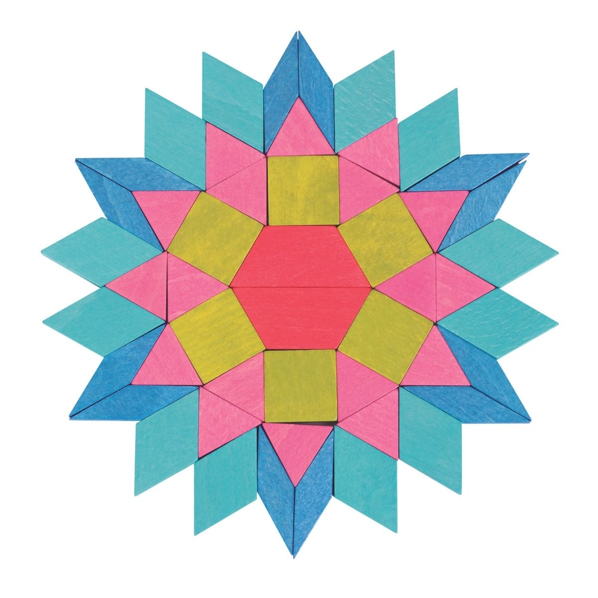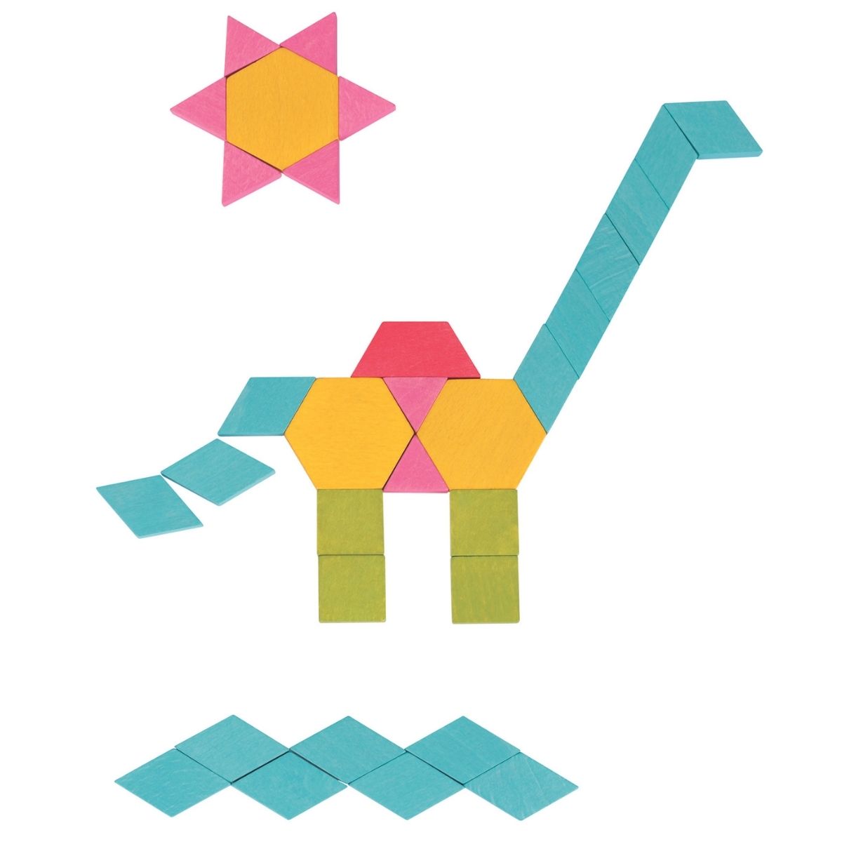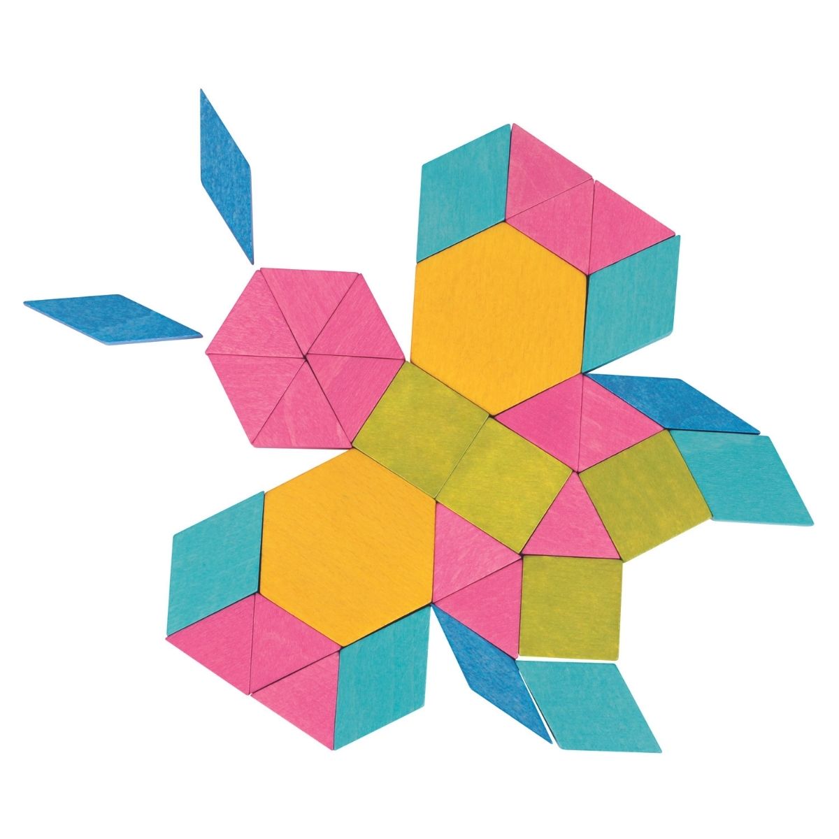 • The Mosaic Blocks are a set of wooden blocks designed for children to create patterns and designs. The set typically includes a variety of colored wooden blocks that are of different shapes and sizes.