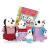 Say hello to the Woof winkle Dog Family! These animal characters live in Honeysuckle Hollow, a friendly neighborhood where all the Lil Woodzeez work together and have fun. This toy set comes with four dog characters: Mom Molly, Dad Toby, and kids Ruby and Patch. Also included is a family storybook, Lil Luvs & Hugs Nursery, so you can learn more about the adventures of the Woof winkle Dogs! These tiny toys are soft to touch, and you can move their heads, arms, and legs for hours of pretend play. Each miniature figurine comes with a colorful outfit, which you can mix and match with other Lil Woodzeez toys. Use your imagination to explore the wholesome world of Honeysuckle Hollow!