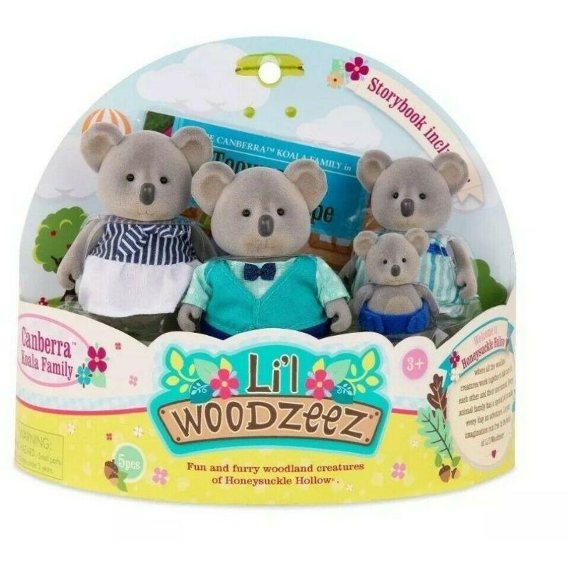 Say hello to the Canberra Koala Family! These animal characters live in Honeysuckle Hollow, a friendly neighborhood where all the Lil' Woodzeez work together and have fun. Each family comes with their own fun adventure storybook.