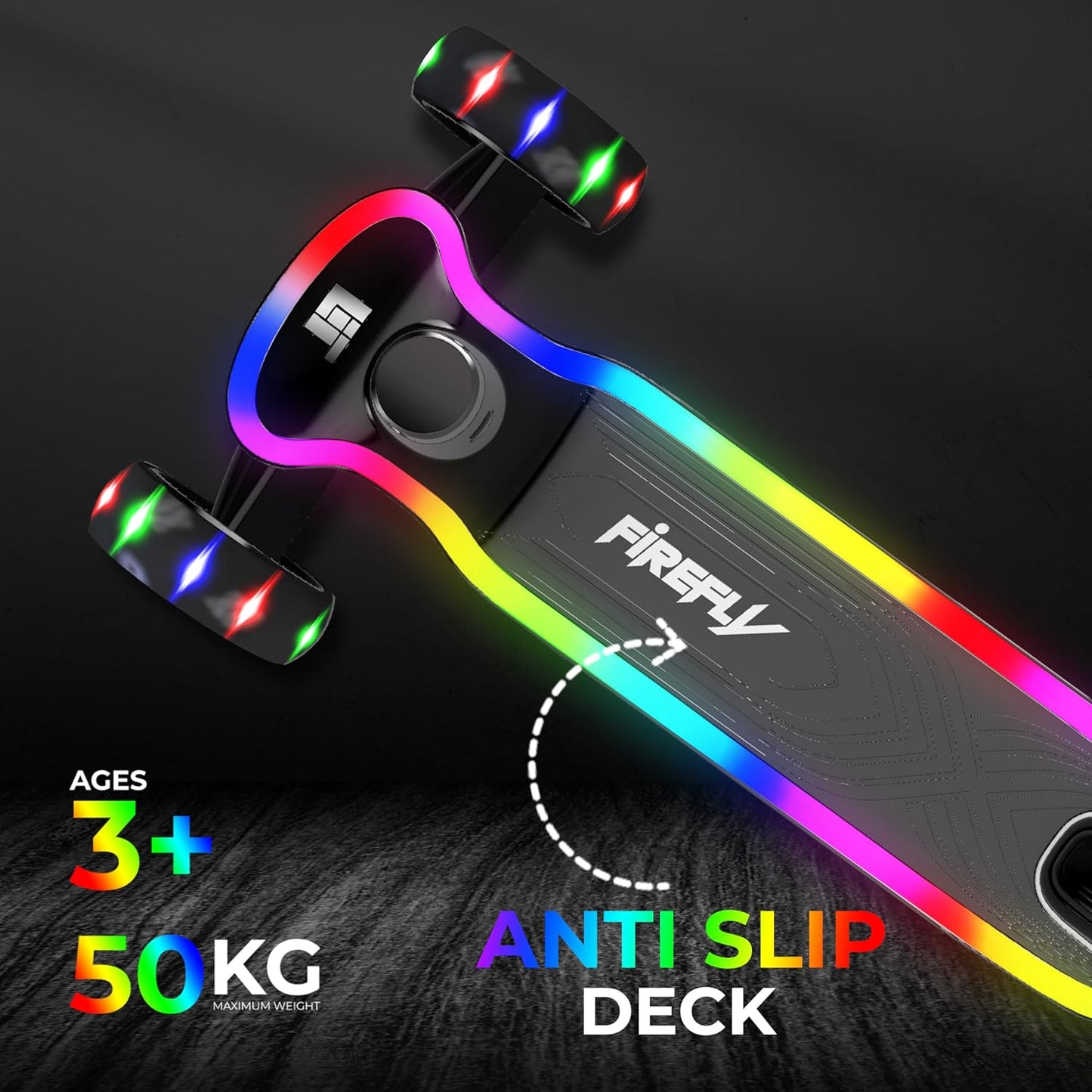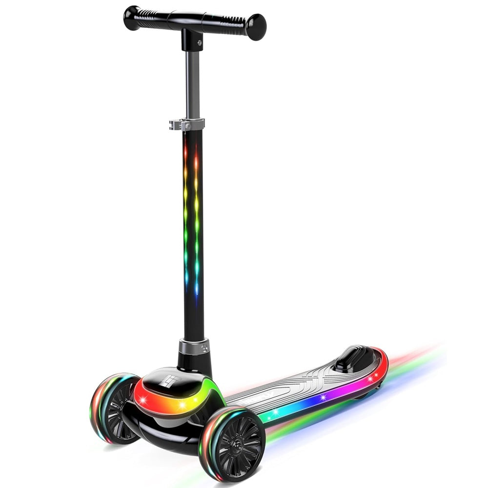 MULTIPLE LED LIGHTS: Kids love the bright and bold LAVA LED light set that covers this scooter’s Stem, and Deck! The vibrant lights flash in multiple colors and stand out from the crowd. The 3 wheels on the scooter feature motion powered RGB LED lights to complete the package. Choose from 20 different light modes to light your way.