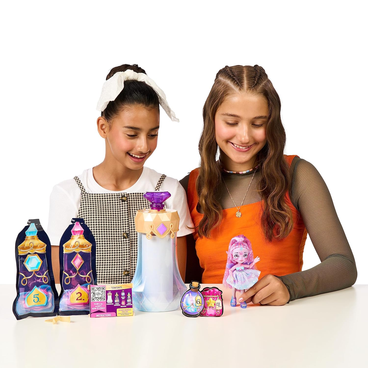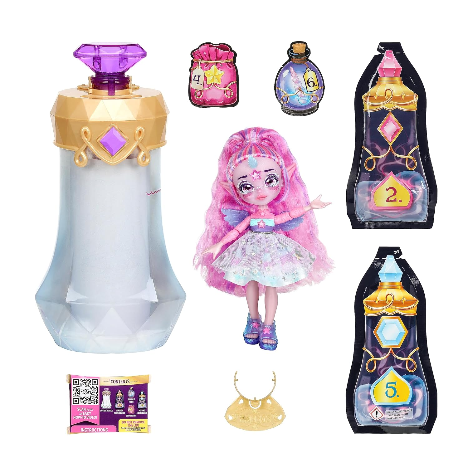 Magic Mixies Pixlings Unia The Unicorn Doll is a beautiful unicorn Pixling doll who has the power to make dreams come true. She also has long, purple hair and a mystical pearl horn gem on her forehead. To create your own Unia doll, you will need to add the included magical ingredients to the potion bottle and say the magic words, Magicus Mixus. Then, turn and press the Crystal Gem topper. Before your eyes, the potion will turn clear, magically revealing Unia the Unicorn doll inside. It is a great toy for children who love magic and adventure. She is also a fun way to learn about science and chemistry.