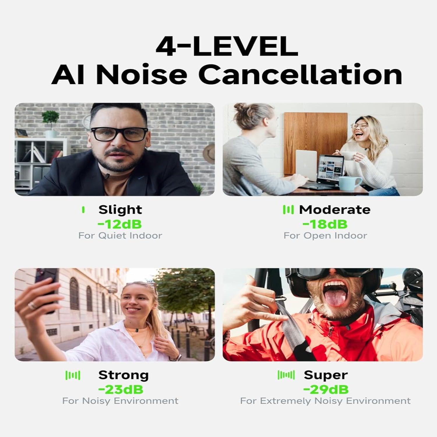 4-Level AI Noise Cancellation: The Wave T1 mini clip-on mic supports one-click to turn on/off the noise reduction, combined with 32dB gain control and Smart Automatic Limiting function, ensure crystal-clear and rich recordings in noisy environment