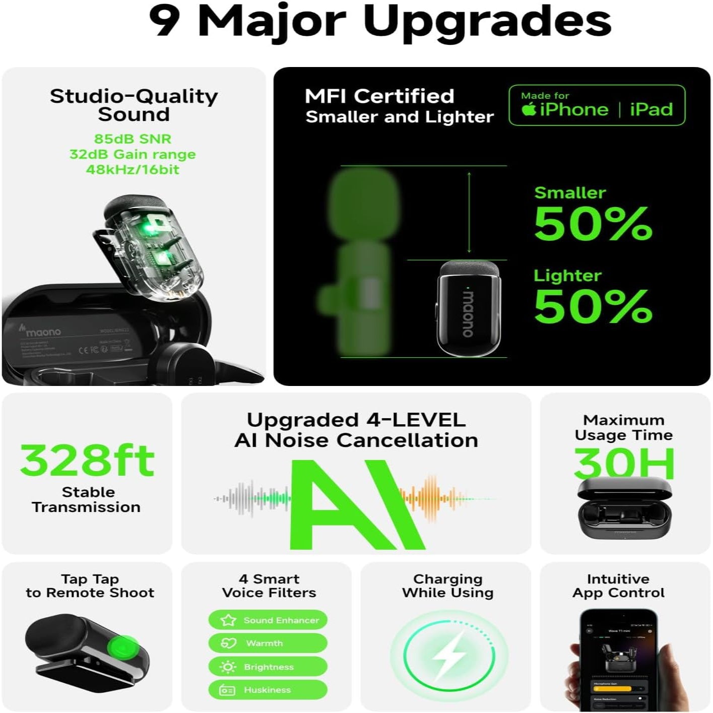 MFi Certified, Secure Recording: Apple-certified iPhone microphone for safety, enjoy seamless compatibility with iOS systems and secure, interference-free premium audio signal transmission for a reliable recording experience, ensuring no risk of overheating, data loss, or damage to your devices