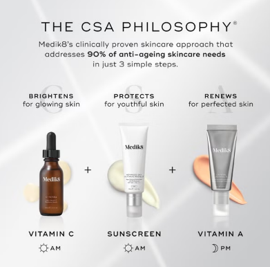 The Medik8 C-Tetra Serum delivers powerful antioxidant protection against environmental stressors while minimising the look of uneven skin tone for a visibly brighter finish.