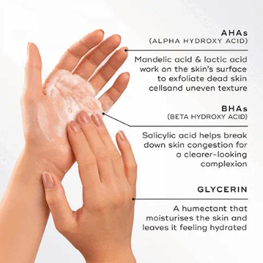 Acting as the second step in your double cleansing routine, the non-stripping face wash utilises a blend of l-mandelic, l-lactic and salicylic acids to provide a gentle exfoliation, helping to decongest the pores and reduce texture. Glycerin, an ingredient recognised for its humectant properties, delivers a boost of moisture with every cleanse, while mangosteen defends against environmental aggressors that can contribute to premature skin ageing.