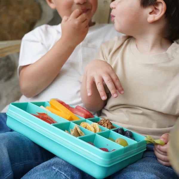 The individual compartments prevent unwanted mixing or crushing, keeping snacks fresh and intact. The removable dividers provide versatility, accommodating both small and large snacks. Ideal for travel, family outings, school lunches, and road trips, the Snackle Box is durably constructed with a secure snap-lock lid to keep snacks secure during bumpy rides or energetic play. Free of harmful chemicals such as BPA, lead, PVC, and cadmium, it prioritizes safety.