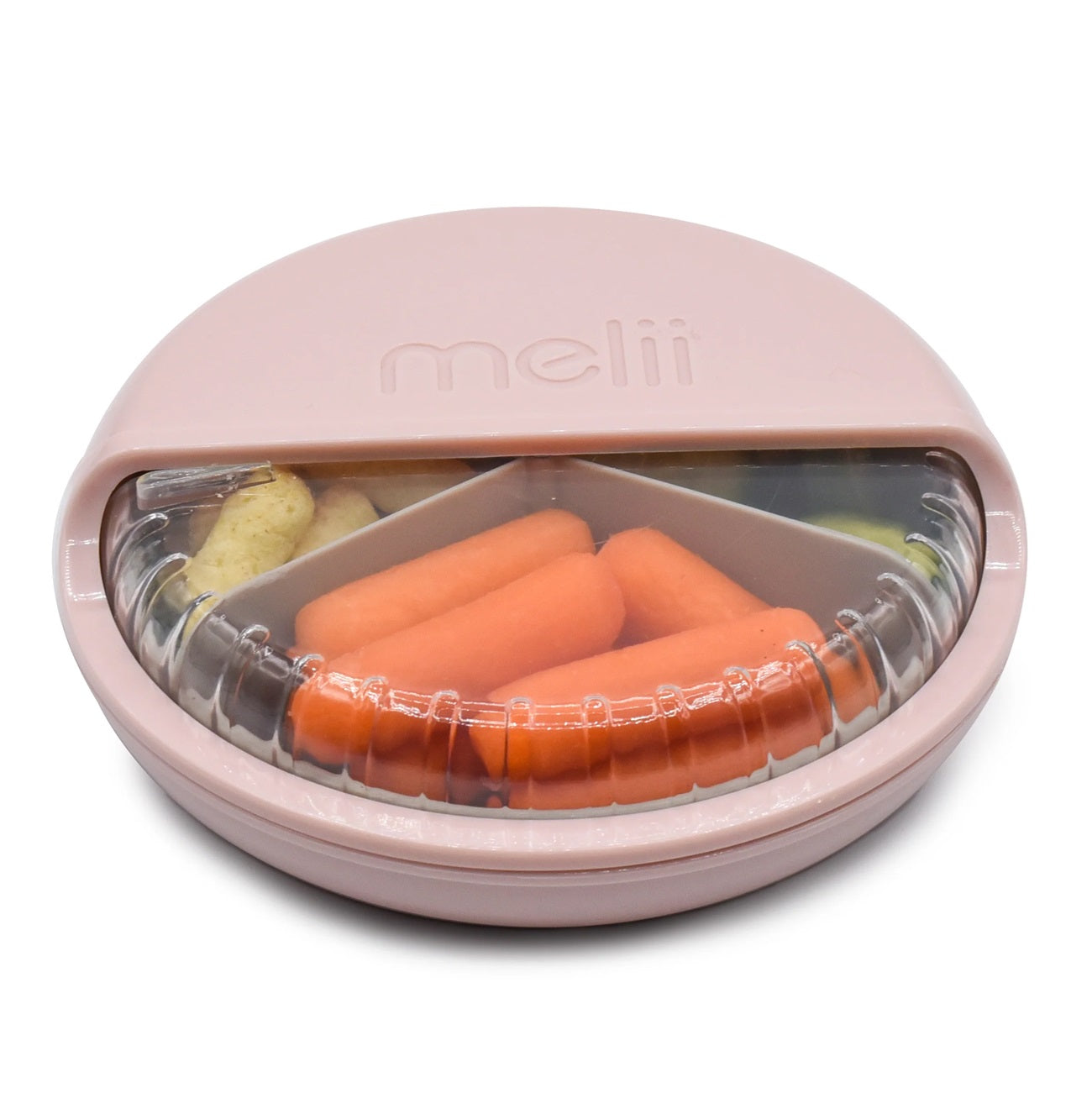 The Melii Spin Container is the ultimate snacking companion for active kids. With three compartments for food, this innovative snack container allows children to spin through their snacks, adding an element of excitement to snack time.