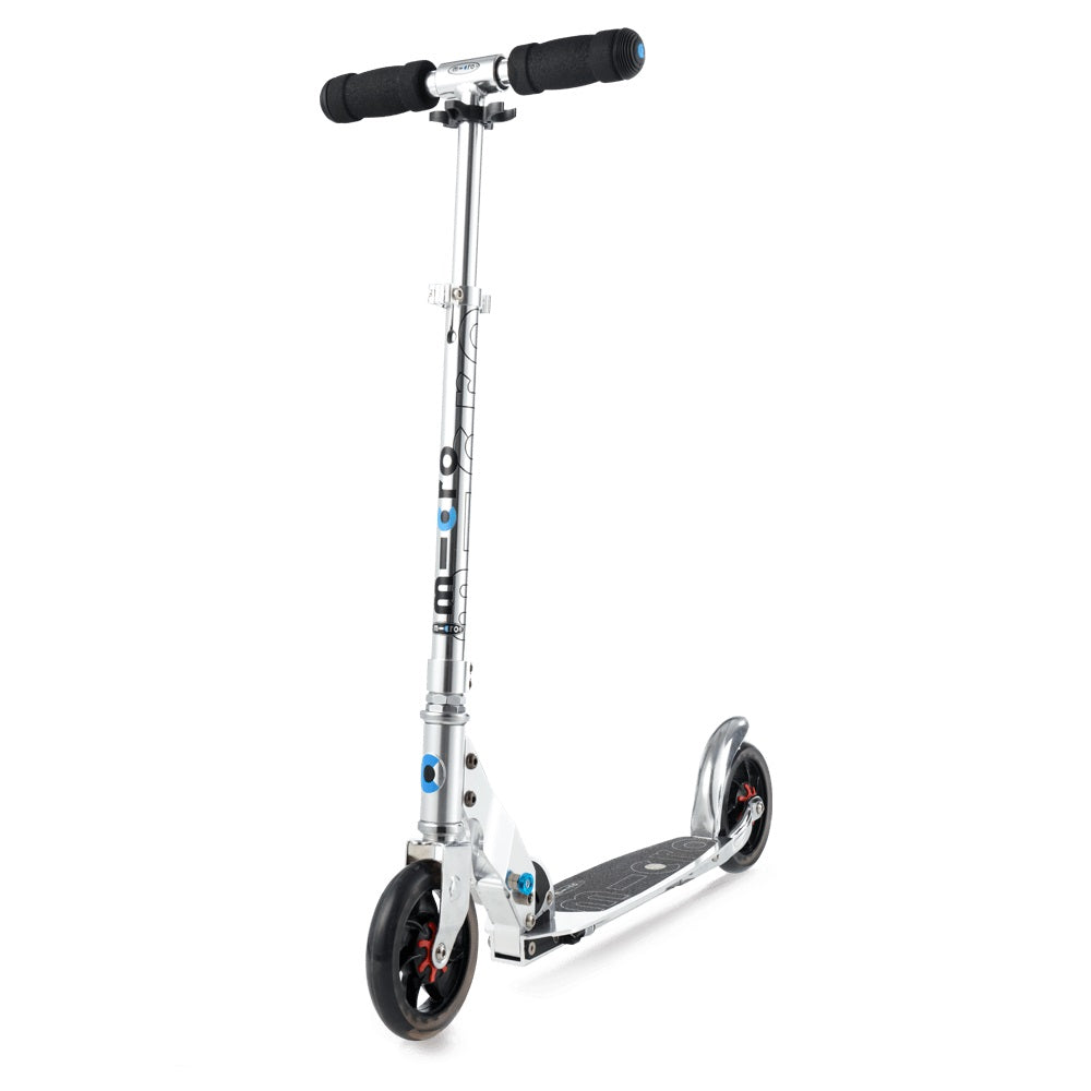 Unobtrusive, but still an eye-catcher, the Micro Scooter Speed+ is equipped with shock-absorbing wheels – a very special extra feature. The ball bearings are embedded in silicone, achieving a mild shock absorbing effect and, consequently, contributing to a smooth ride - even on rough surfaces. The unique look of the Micro Scooter Speed+ is rounded off by its cool design. This aluminium scooter is your perfect companion on the way to school or when enjoying some leisure time.