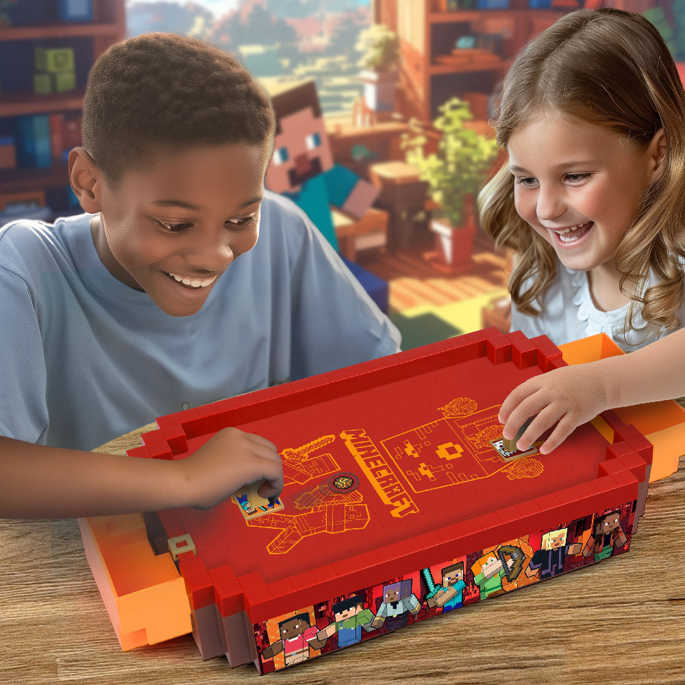 Bring the excitement of the Minecraft universe into your home with the Minecraft Arcade Air Hockey Core Series – Nether Edition. Designed with bold Nether-themed graphics inspired by the popular game, this arcade-style air hockey table delivers fast-paced, competitive fun for kids and families. The smooth playing surface and air-powered airflow allow the puck to glide effortlessly, creating an authentic arcade experience at home. Compact yet sturdy, it’s ideal for bedrooms, playrooms, or game rooms, and encourages friendly competition while improving hand–eye coordination and reflexes. Easy to set up and play, this table is perfect for Minecraft fans who love action-packed games.